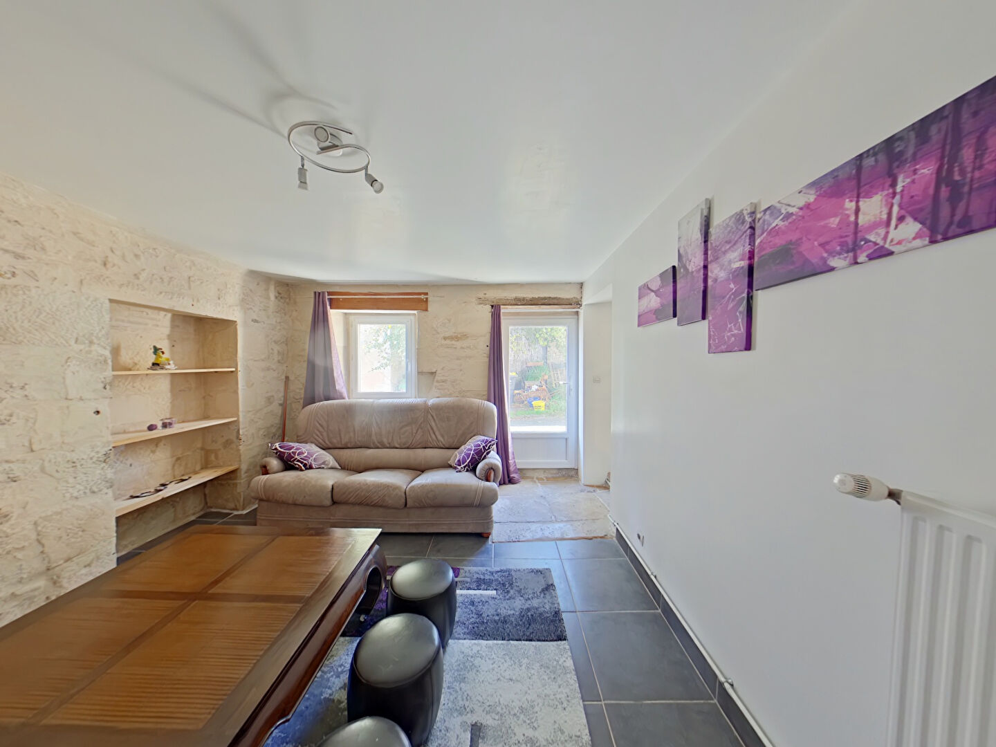 Eric vous propose en exclusivité cette maison de bourg en pierre, au coeur du village de Gouex 86 comprenant salle à manger - cuisine aménagée équipée, salon, dégagement, salle de bains, toilettes.