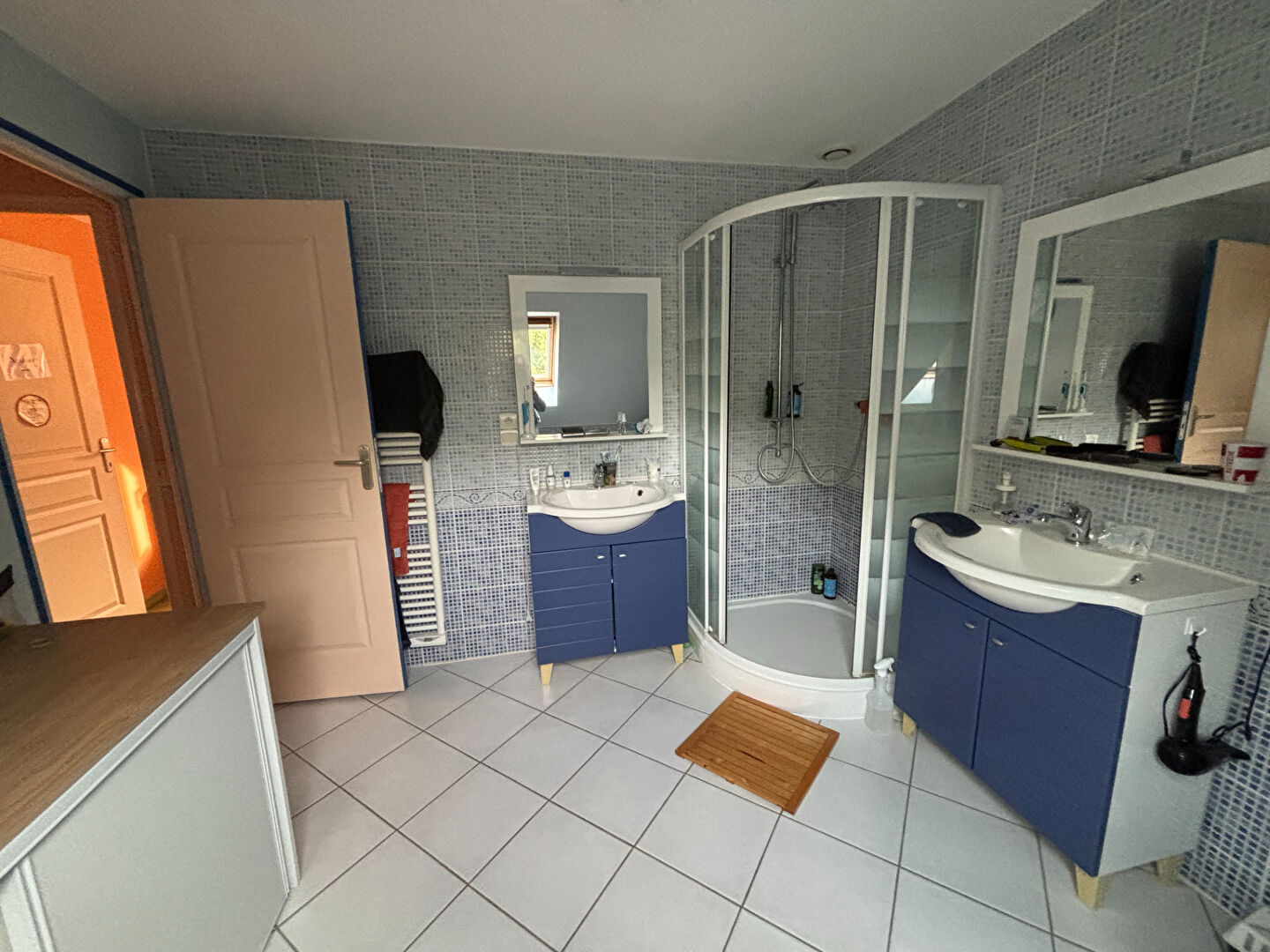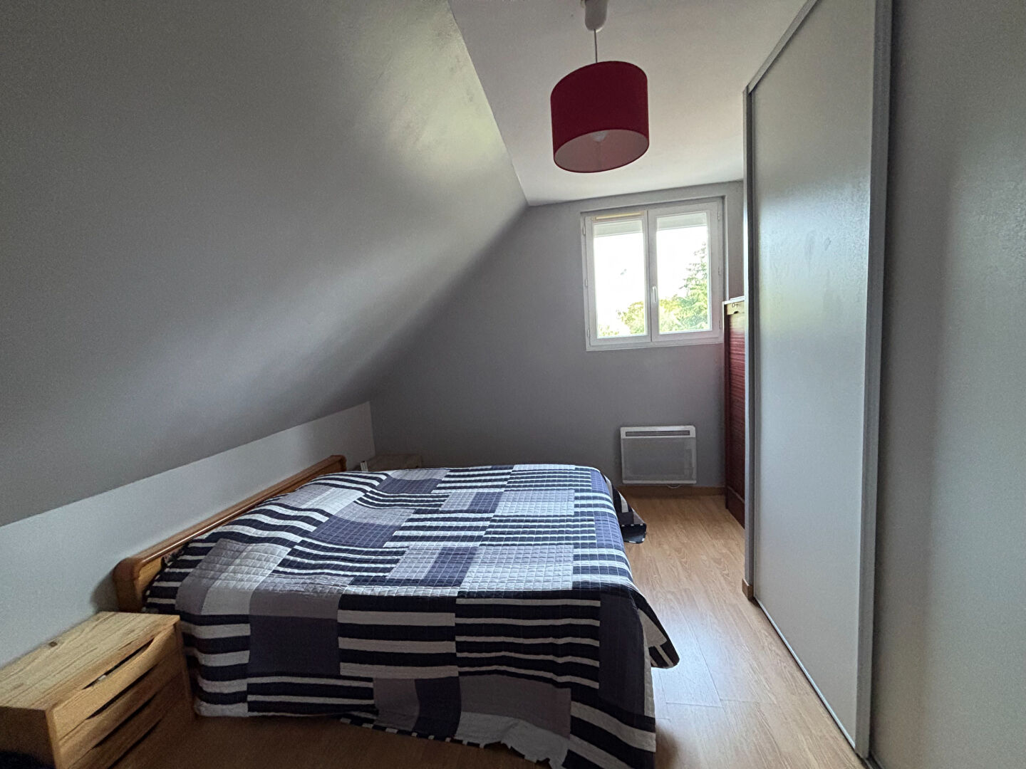 À l'étage, la maison propose une spacieuse mezzanine pouvant accueillir un bureau ou un coin détente, deux chambres avec rangements, une pièce supplémentaire à usage de chambre, ainsi qu'une salle de douche fonctionnelle. Chaque espace a été pensé pour offrir du confort et de nombreux rangements.