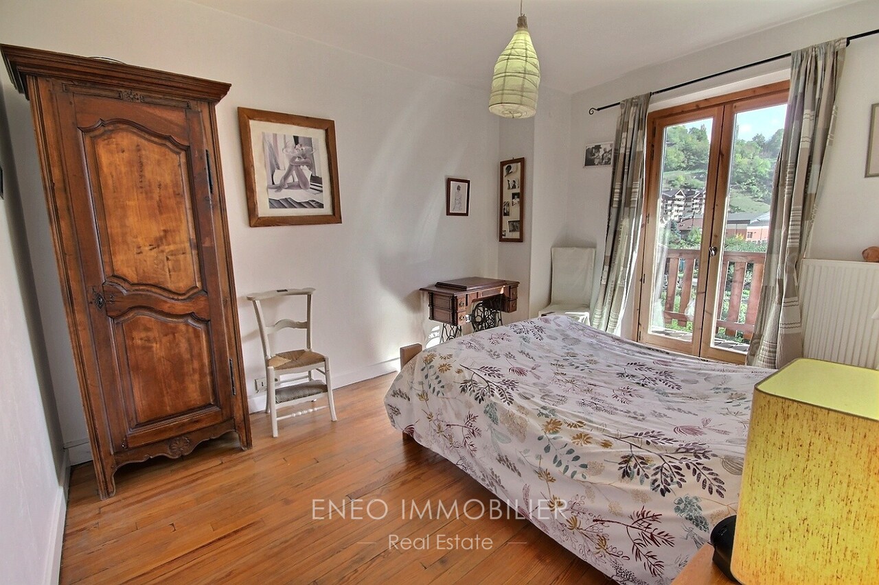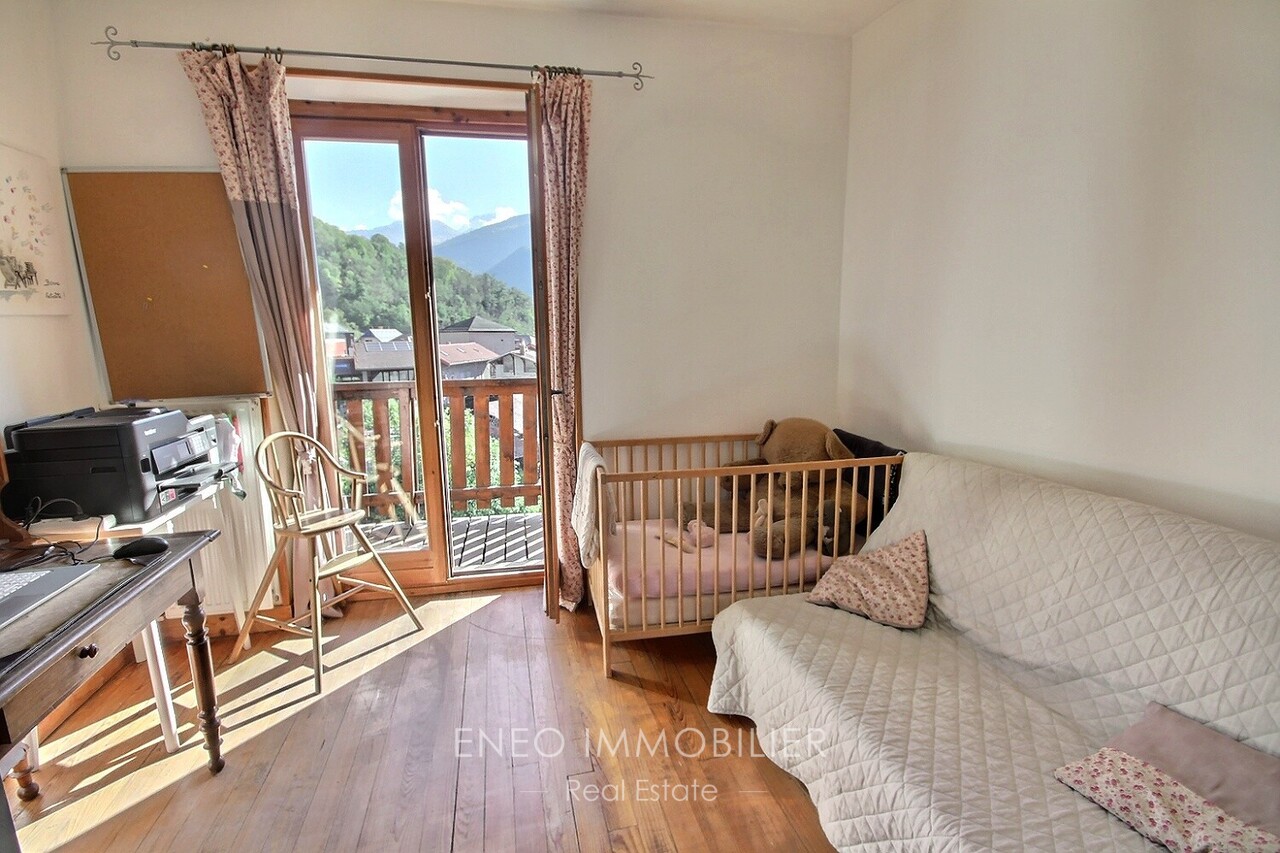 Le premier étage accueille trois belles chambres, dont deux s’ouvrent sur un balcon offrant une jolie vue sur les montagnes environnantes. Une grande salle de bain avec WC complète ce niveau, ainsi que l’accès aux combles.