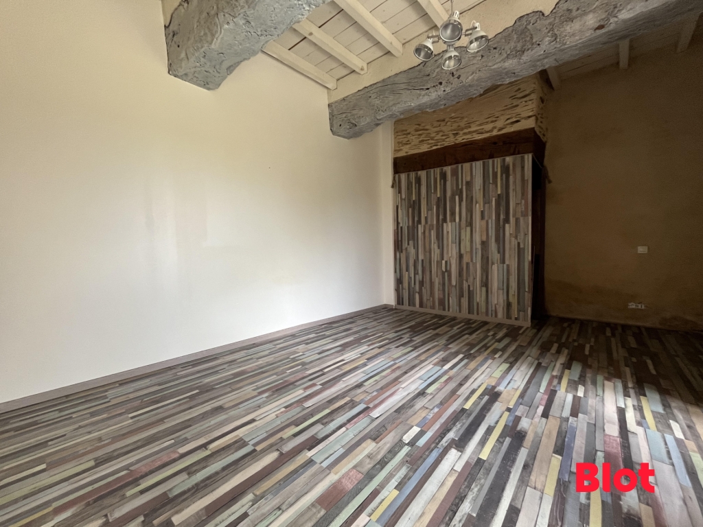 A l'étage, la grande mezzanine sous poutre dessert 2 grandes chambres et un W.C. Possibilité de créer une autre chambre.