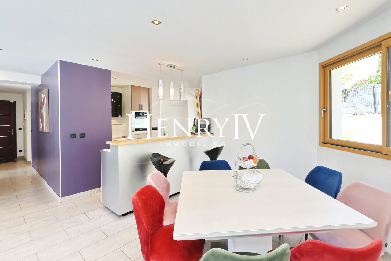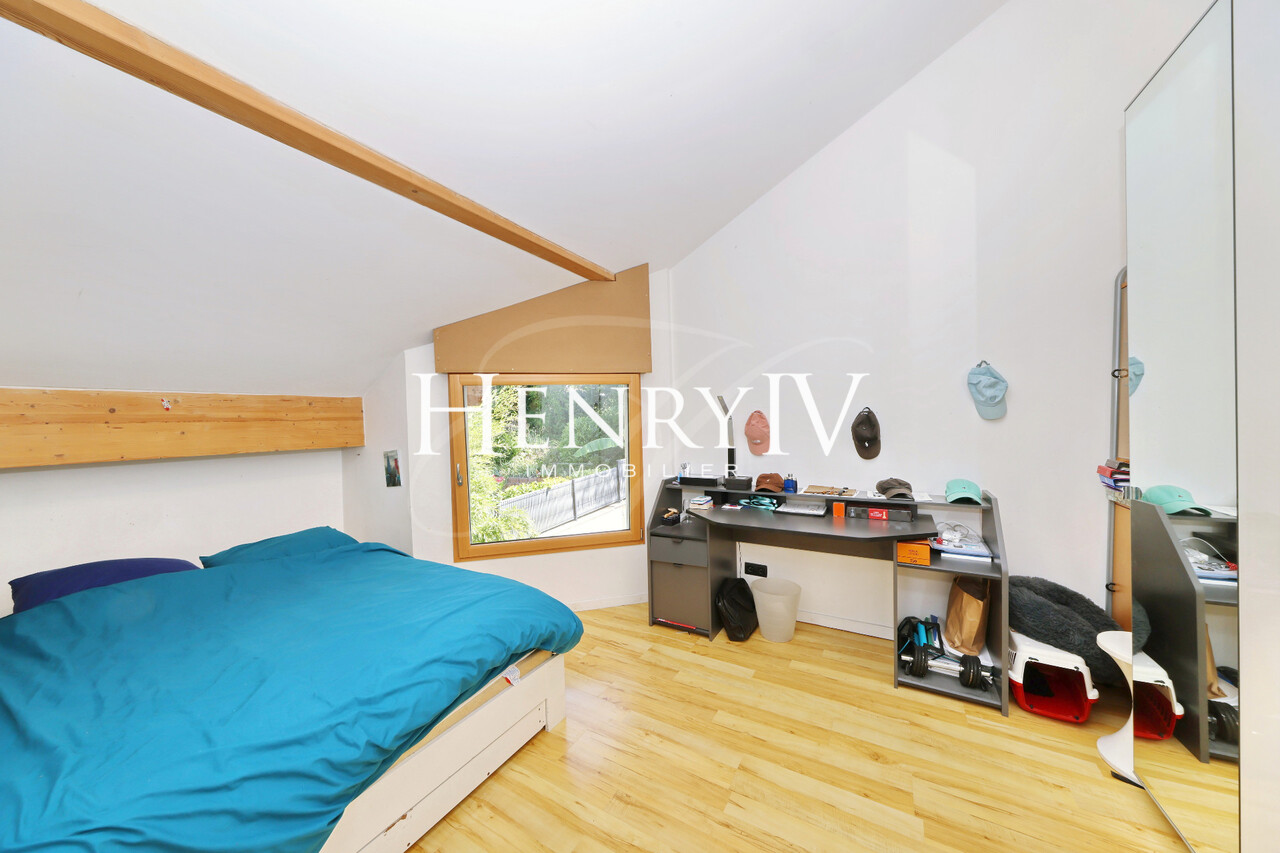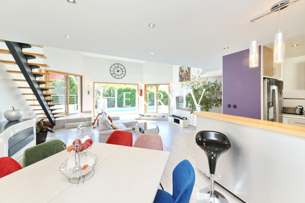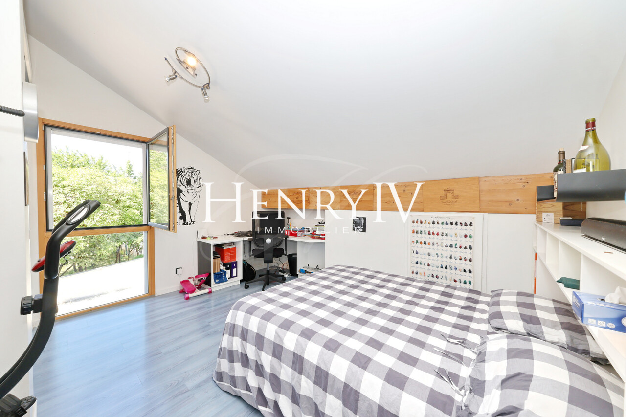 Située au fond d'une impasse, belle villa construite en 2006 par un architecte sur un terrain de 879 m2 composée d'une entrée desservant un grand vestiaire, une salle d'eau, un wc, une chambre, un séjour de 51 m2 agrémenté d'une cuisine ouverte sur le coin repas. A l'étage, 4 chambres dont 1 équipée d'une salle d'eau (+ baignoire), une salle de bains, un wc et une mezzanine qui surplombe le séjour déplafonné. Le jardin exposé sud-Est profite d'une jolie vue sur la chaîne de Belledonne, la piscine miroir apporte une grande originalité à cette propriété au calme et sans vis à vis.