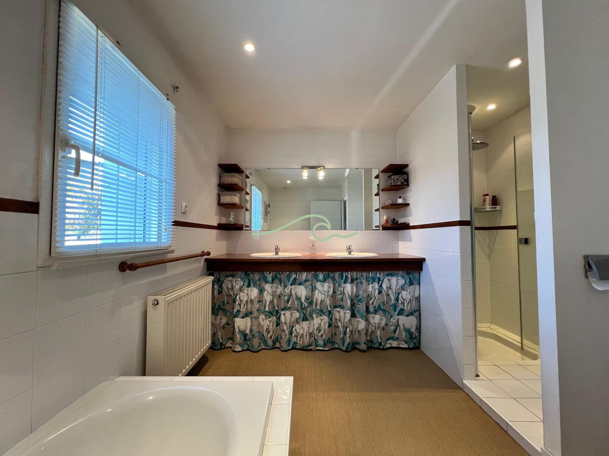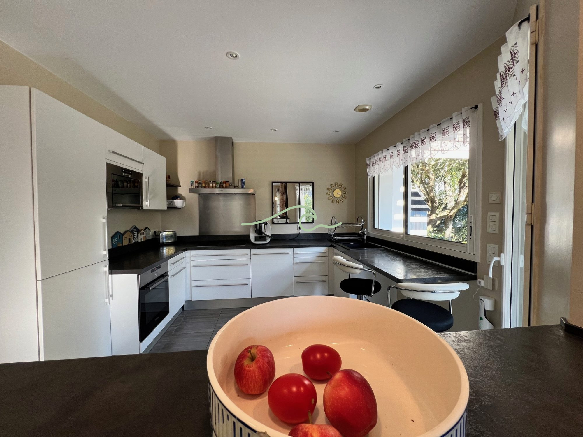 Véritable havre de paix pour cette maison contemporaine implantée au coeur d'un jardin intime joliment paysagé. Le séjour/salon de plus de 60 m2 bénéficie d'un ensoleillement maximal et d'un accès direct sur le jardin, ainsi que la cuisine équipée. Une première chambre avec dressing et salle de bains et douche privative, et à l'étage quatre autres chambres et une salle d'eau. Espace sauna, garage, sous-sol et cave à vins. Très belle opportunité sur ce secteur convoité !
