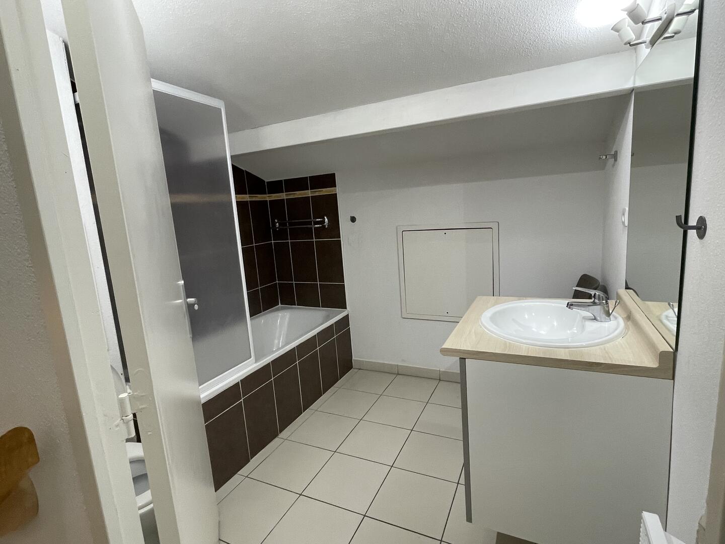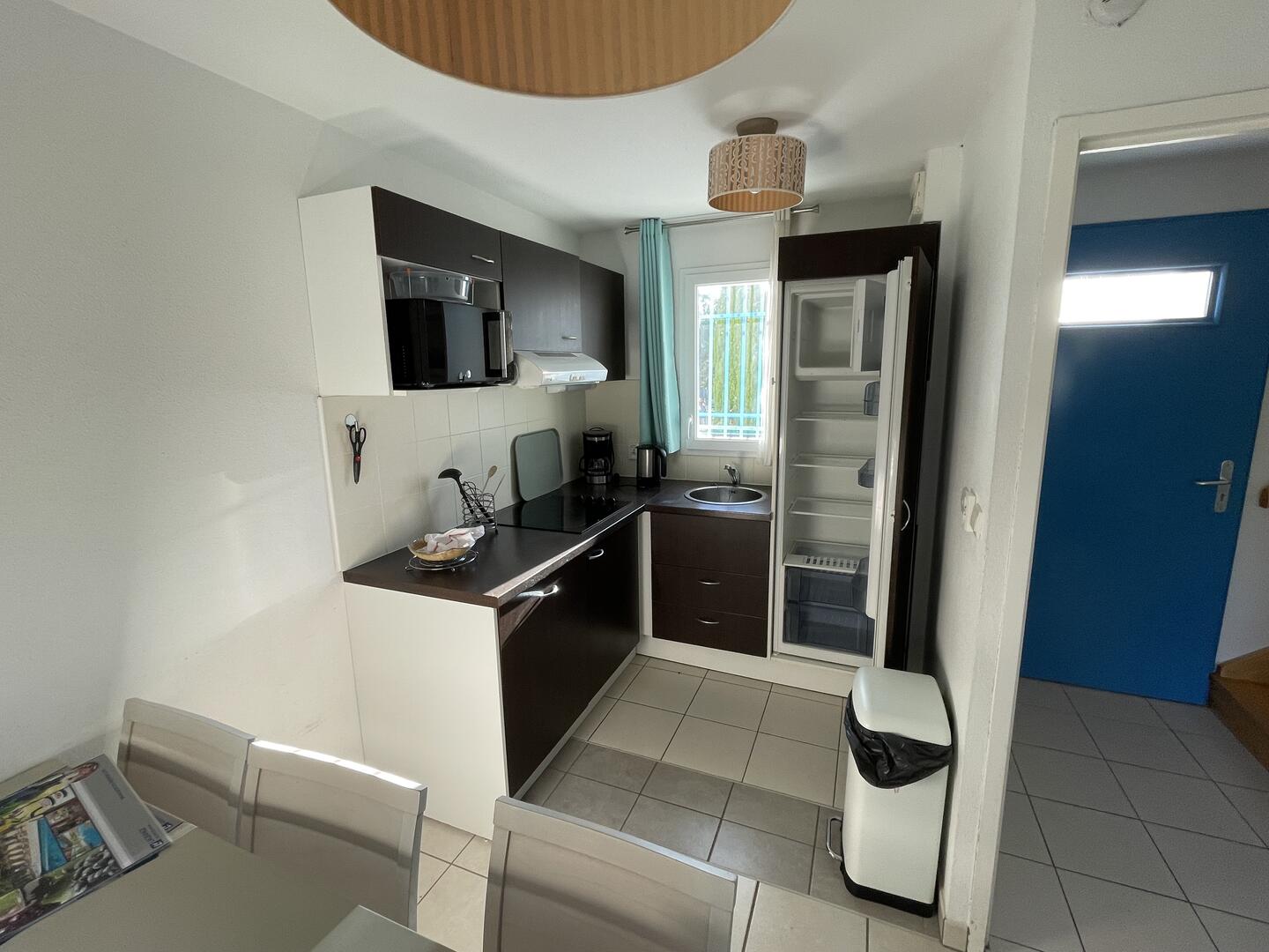 Il dispose d'une entrée avec placard, d'un séjour-cuisine équipée, deux chambres, salle de bains et deux wc.