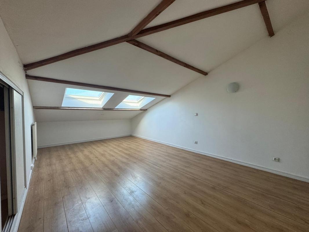 Au second niveau, une vaste chambre mansardée de 24,19 m2 au sol avec rangement .