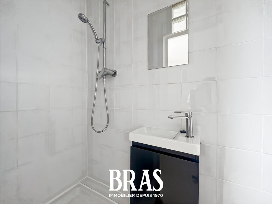 Idéalement situé Place Edouard Normand, au 4ème et dernier étage d'un immeuble de charme et bien entretenu, agréable studio récemment rénové et comprenant : pièce-à-vivre avec coin cuisine équipée (frigo, plaques, évier), salle d'eau (douche, WC, lavabo) et espace de rangement. Studio lumineux au calme.