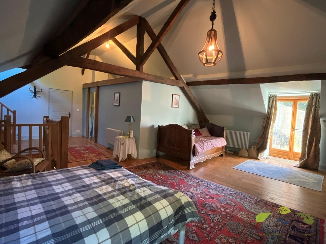 À l?étage principal se trouvent une belle suite parentale avec poutres apparentes et climatisation réversible, une deuxième chambre, une petite chambre mansardée pleine de charme, un WC et une salle de bain avec baignoire et douche. L?étage de la seconde partie de la maison comprend trois chambres et une salle de bain avec baignoire et douche.
