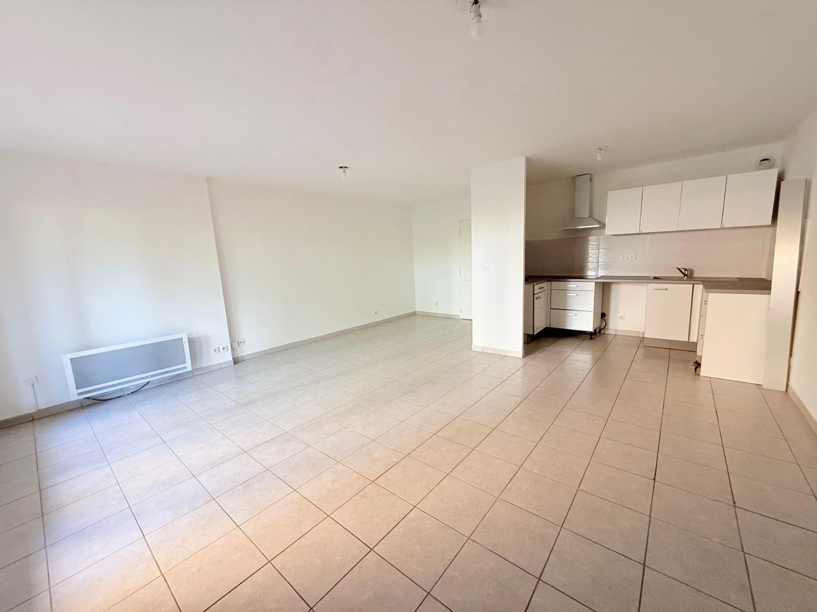 Il comprend, une entrée avec placard, un grand séjour avec une cuisine ouverte, deux belles chambres de 14m2 chacune avec placards, une salle de bain et des toilettes indépendants