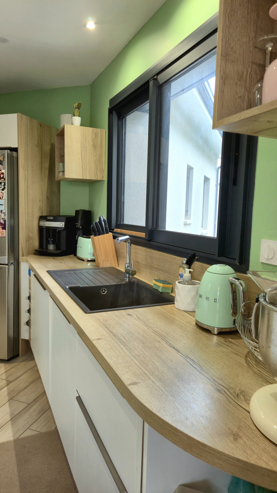 Moi, c'est la maison construite en 2018. J'ai été pensée pour la vraie vie. Celle des repas partagés, des jeux d'enfants, du calme retrouvé. Chauffage au sol, clim, volets domotisés, alarme, aspiration centralisée... ici, le confort est une évidence.