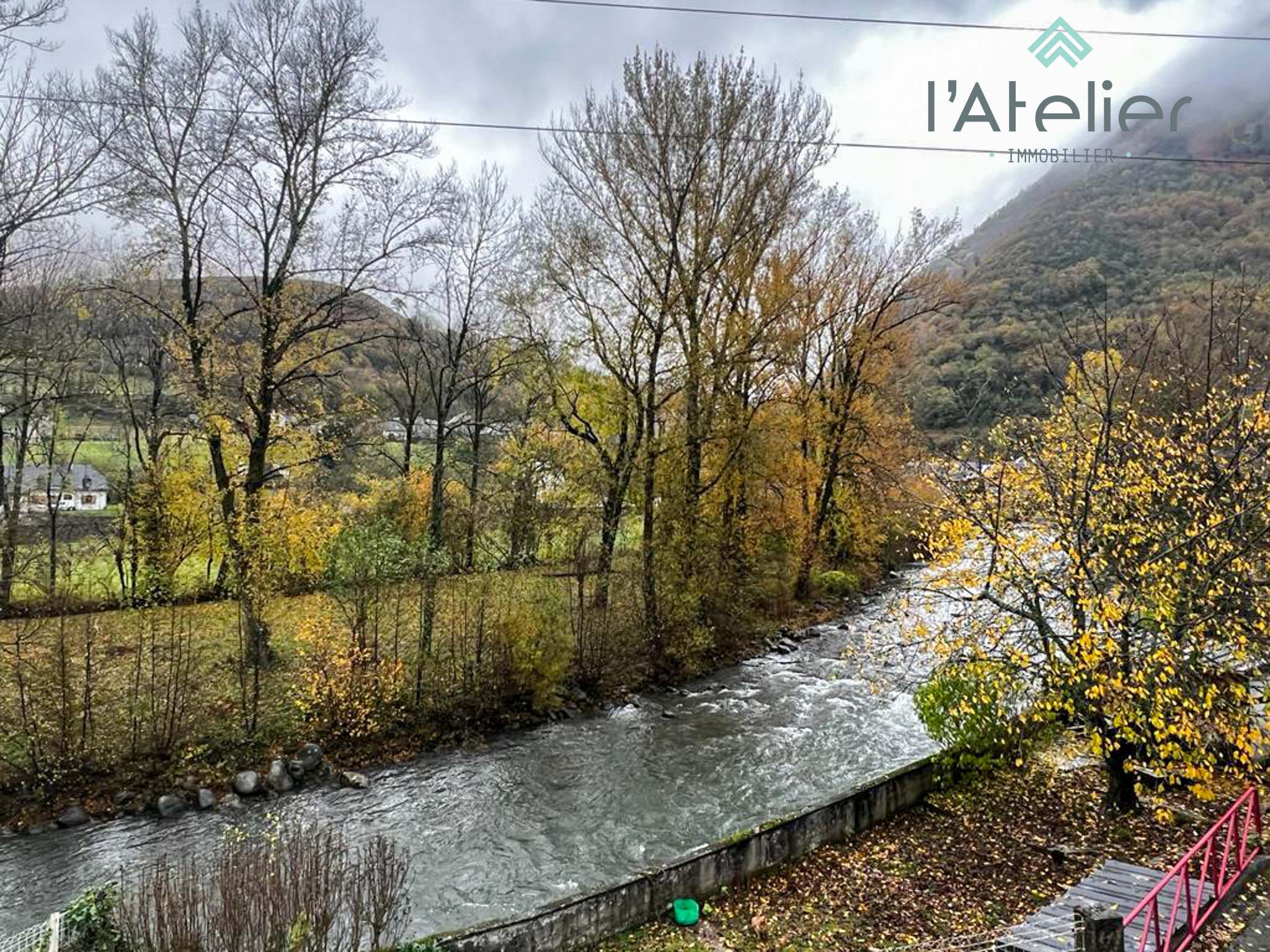 A l'extérieur vous serez charmé par la belle terrasse en contre bas et le joli jardin privatif clôturé, à l'arrière de la maison la vue sur la Neste viendra parfaire le tableau d'un écrin montagnard où il fait bon vivre.
