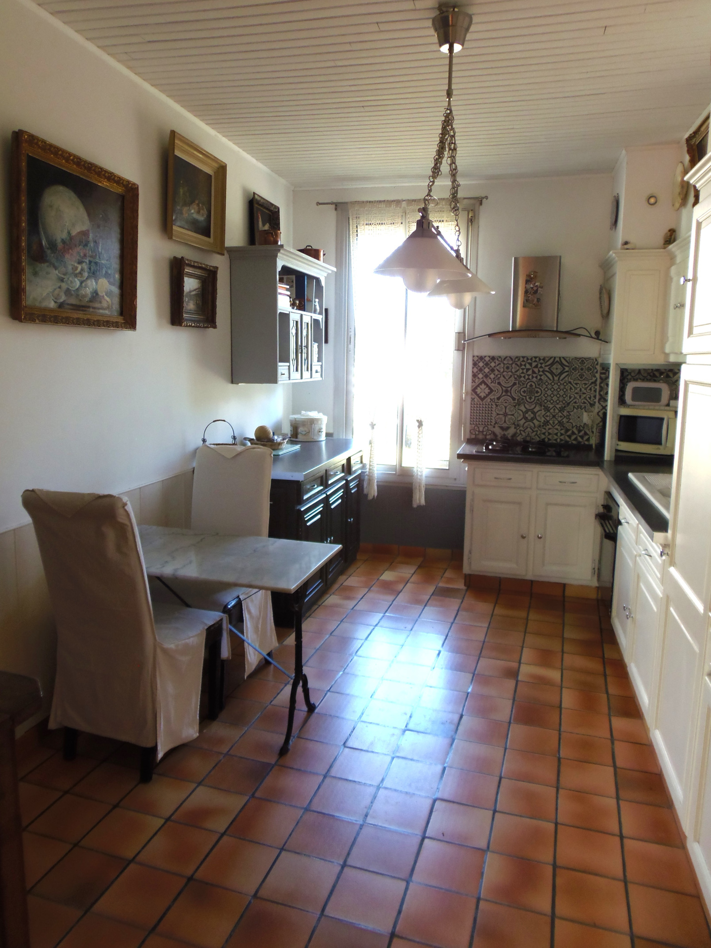 La propriété elle-même a un grand salon/séjour de 40m2 avec un poêle à bois, une cuisine de 16.35m2 avec coin repas, une chambre de 14.35m2 au rez-de-chaussée avec sa propre douche et w/c, une belle véranda, toute neuve, et double vitrage tout neuf. A l'étage se trouvent 3 autres chambres de 14m2, 13.65m2 et 13m2 qui donnent toutes sur le port, une salle d'eau de 8m2 avec double vasque et wc, le grand palier de 28.40 m2 sert de second salon. Le dernier étage qui surplombe également le port est utilisé comme atelier d'art. Sa cour, qui donne sur le port, est joliment agrémentée de palmiers et de plantes méditerranéennes.