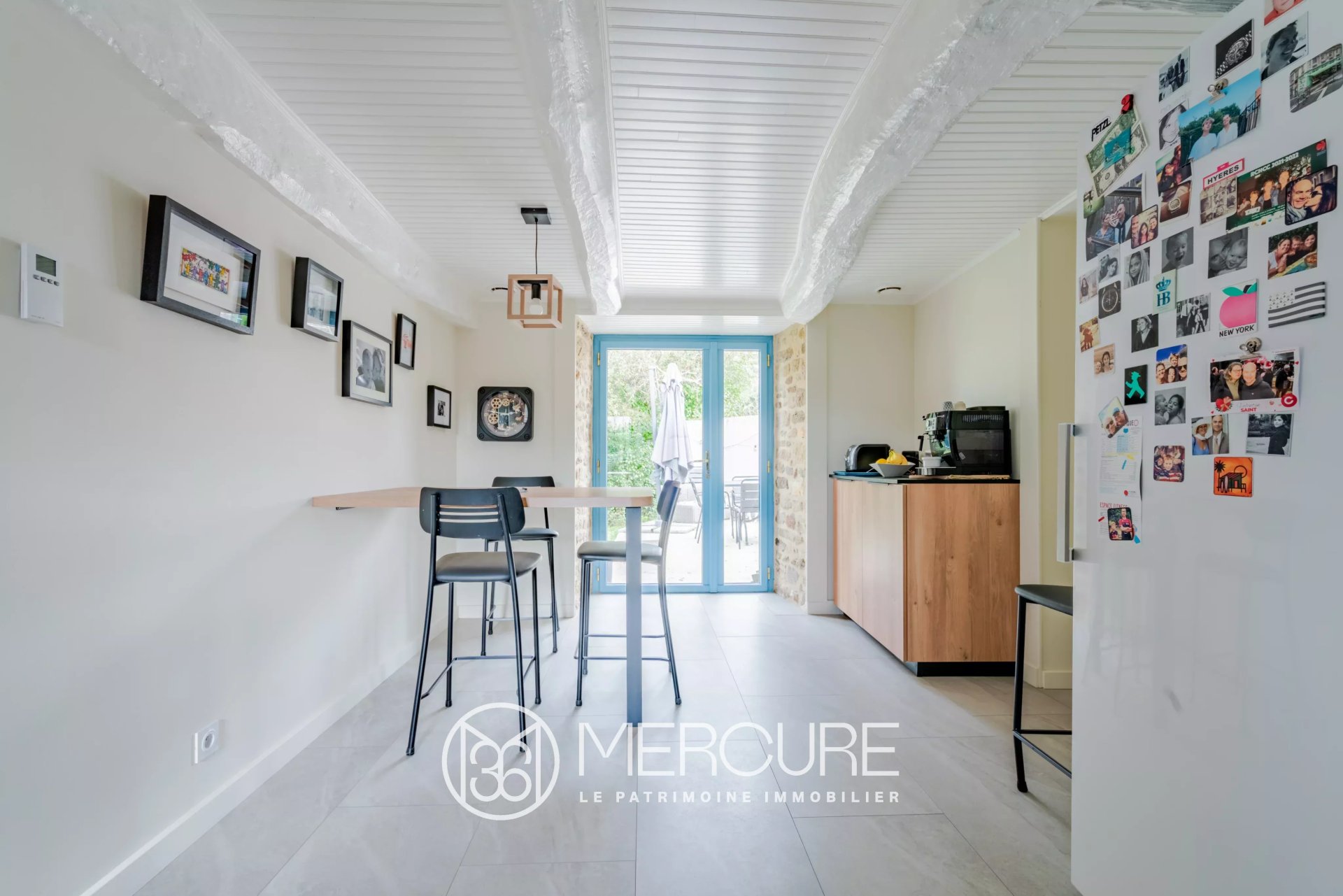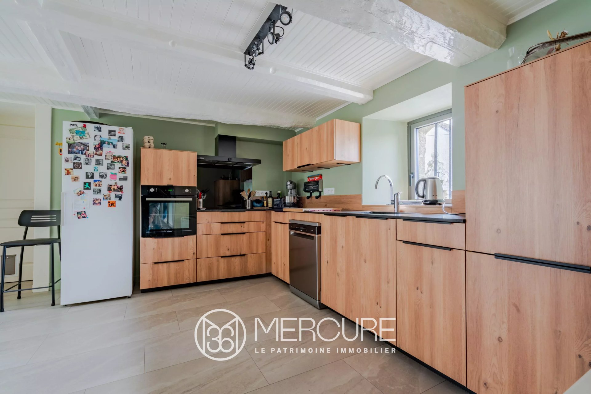 Le hall d'entrée accueillant dessert un rangement dressing et une cuisine moderne très fonctionnelle avec accès direct sur une grande terrasse dînatoire.