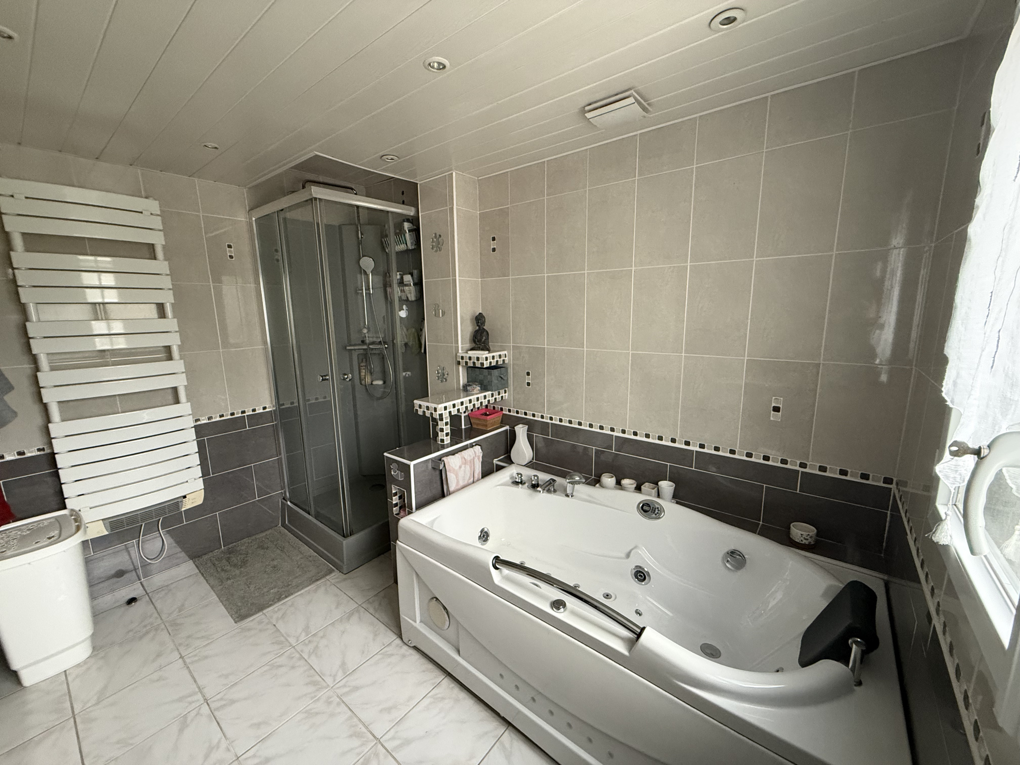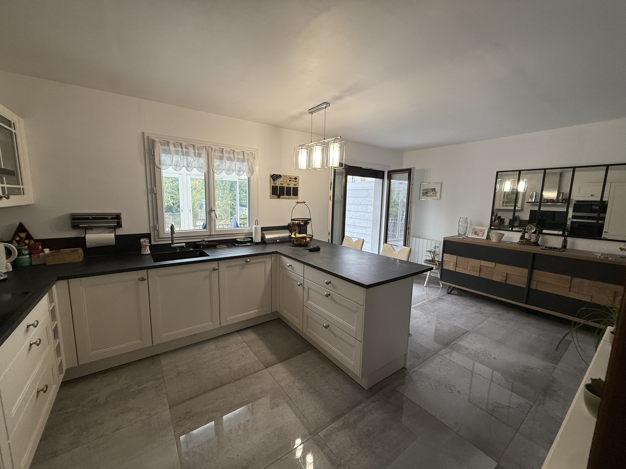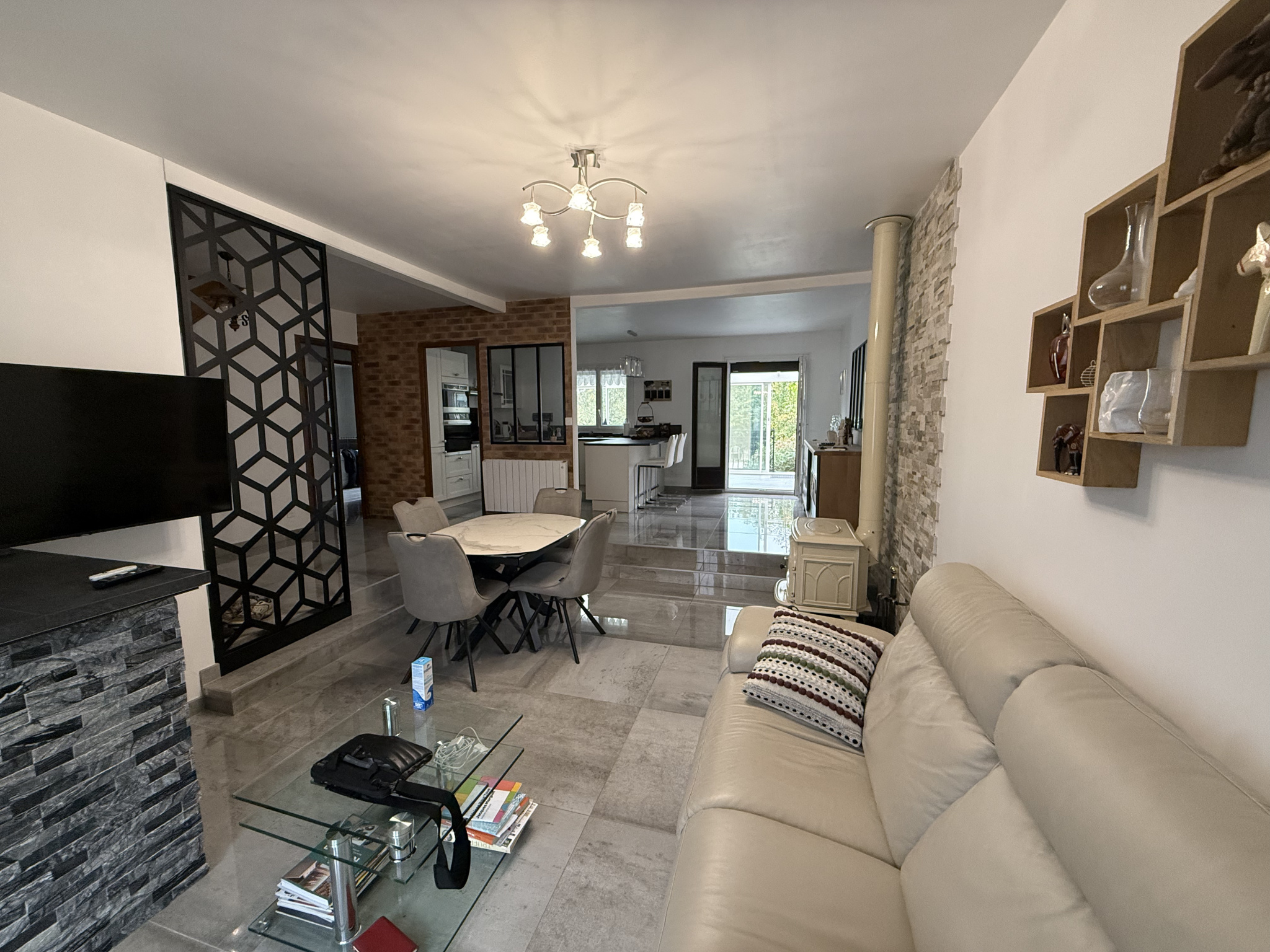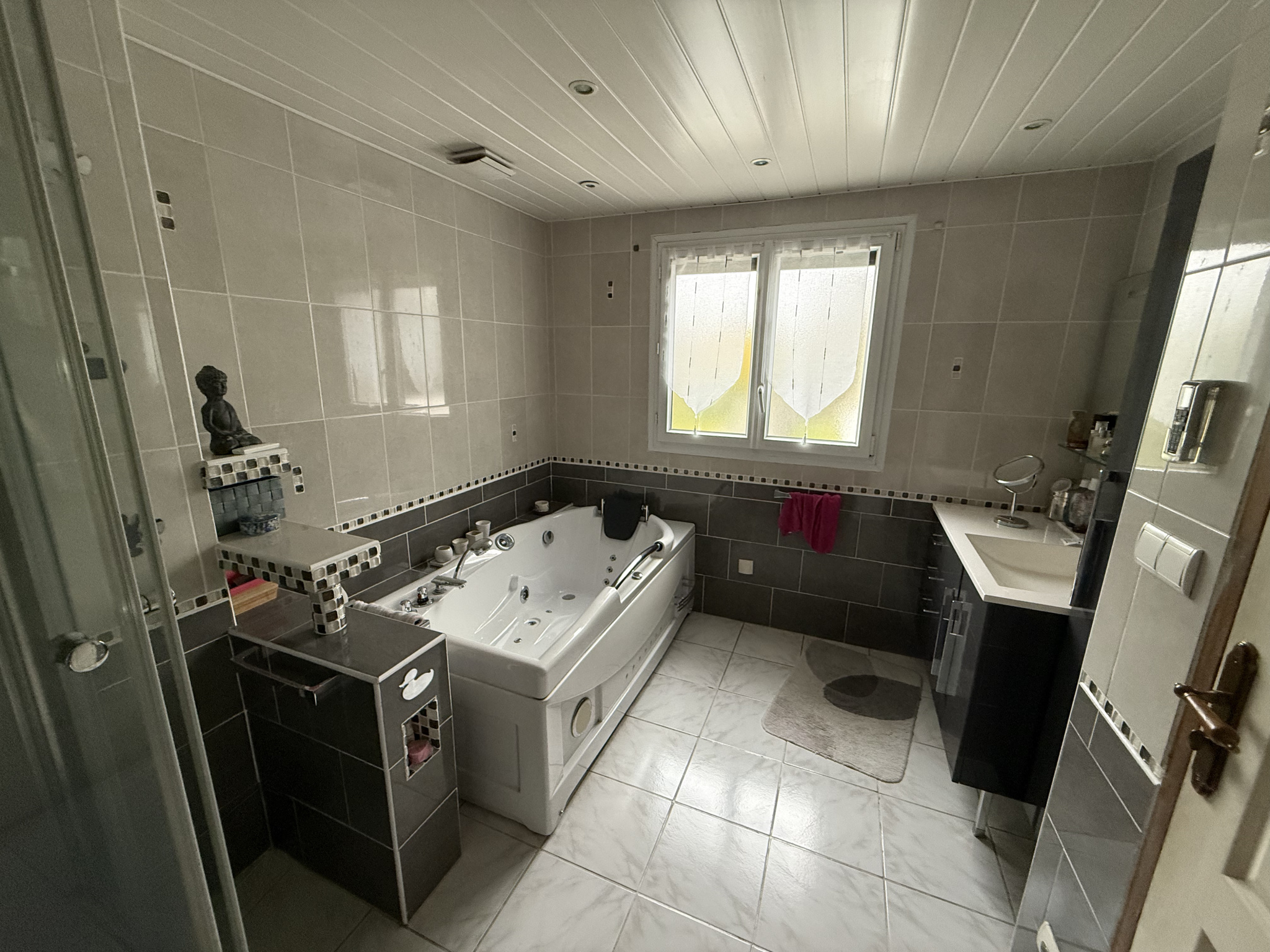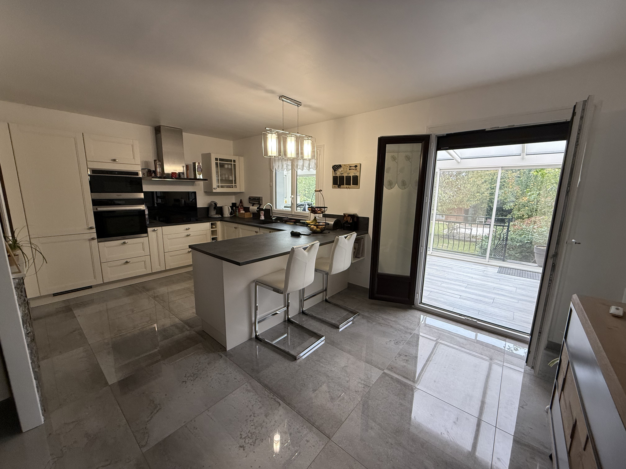 - Au rez-de-chaussée : une entrée, un séjour, salle à manger, une cuisine ouverte, une véranda lumineuse, une chambre, une salle de bains avec douche et bagnoire, un W.C. séparé