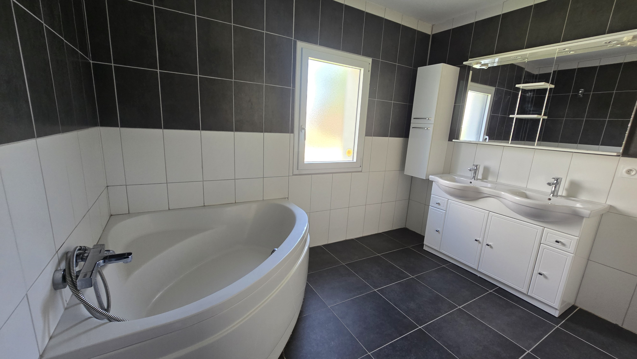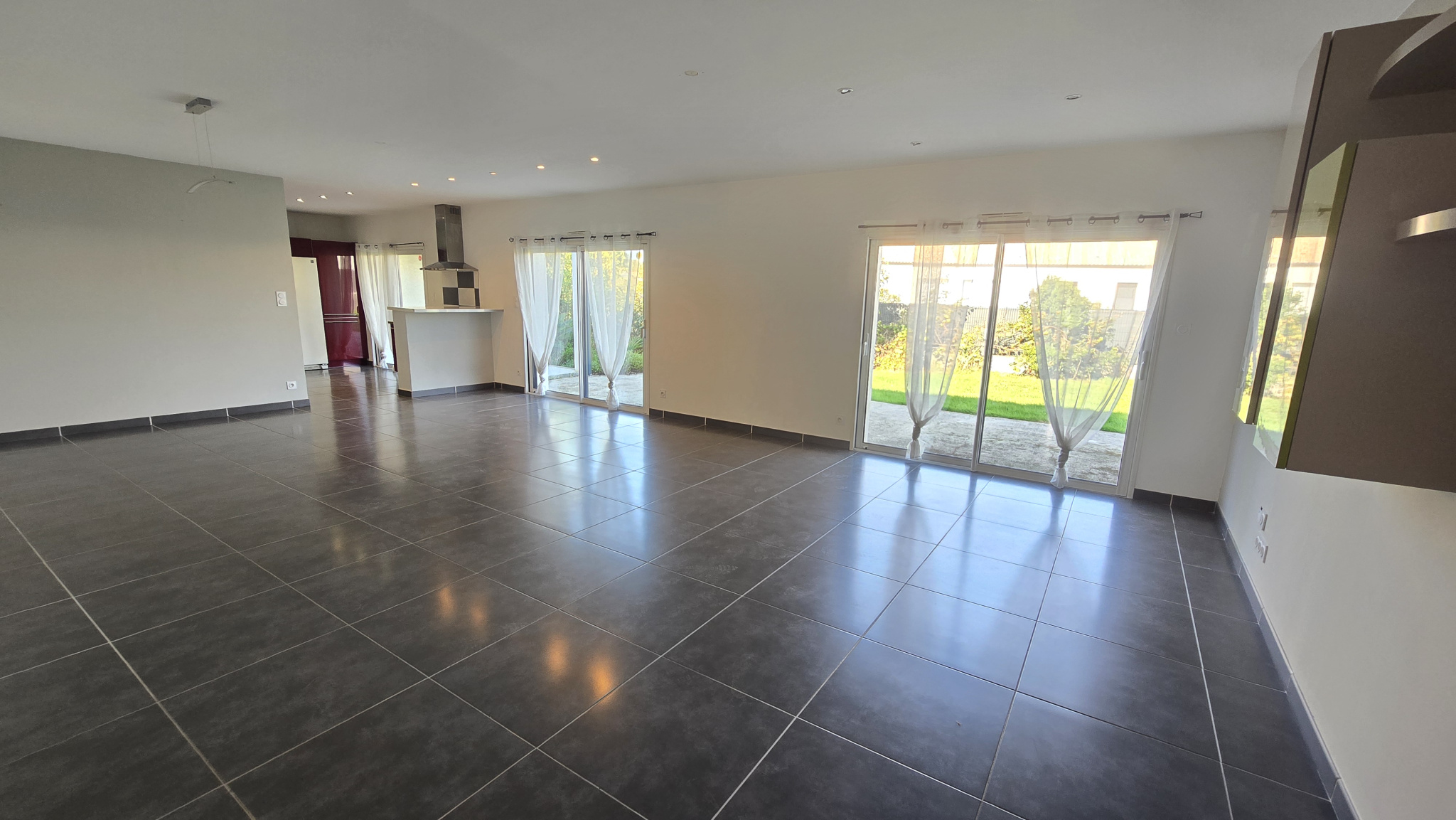 Maison familiale 4 chambres moins de 15 min des plages Moutiers-les-Mauxfaits Située dans un quartier calme et recherché proche des commerces, venez découvrir cette maison familiale de 2017 plain-pied aux volumes généreux comprenant : un vaste salon-séjour ouvert sur une cuisine moderne aménagée et entièrement équipée, incluant : (four traditionnel, Plaques (gaz + induction) ,Hotte aspirante, Micro-ondes encastré, Réfrigérateur américain), 4 chambres confortables dont une avec dressing et salle d'eau privative. Salle de bains indépendante avec double vasque, sèche-serviette et toilettes séparés. Buanderie attenante à la cuisine. Exposition Est-Ouest. Double garage de 37 m2 avec porte motorisée. Chauffage au sol PAC Air / Eau.