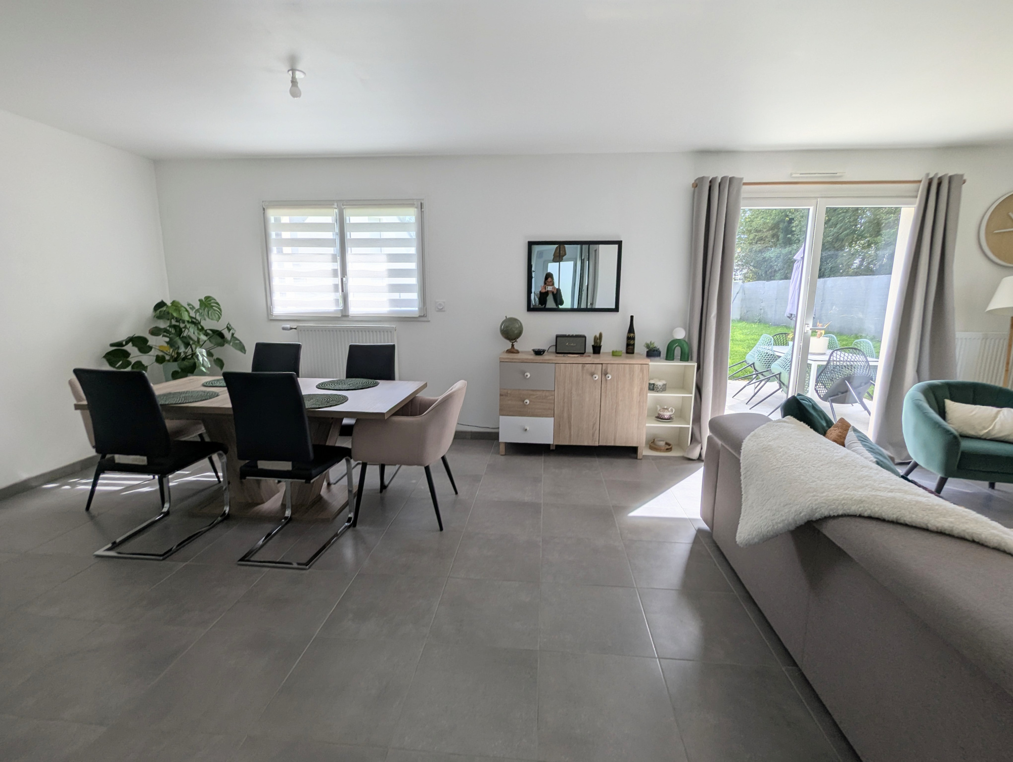 Cette maison récente comprend une belle entrée avec placard desservant une belle pièce de vie baignée de lumière. La cuisine aménagée et équipée est spacieuse et permet la convivialité grace à son ouverture sur le salon-séjour. Le coin nuit se compose de trois chambres, d'une salle d'eau et d'un WC séparé.