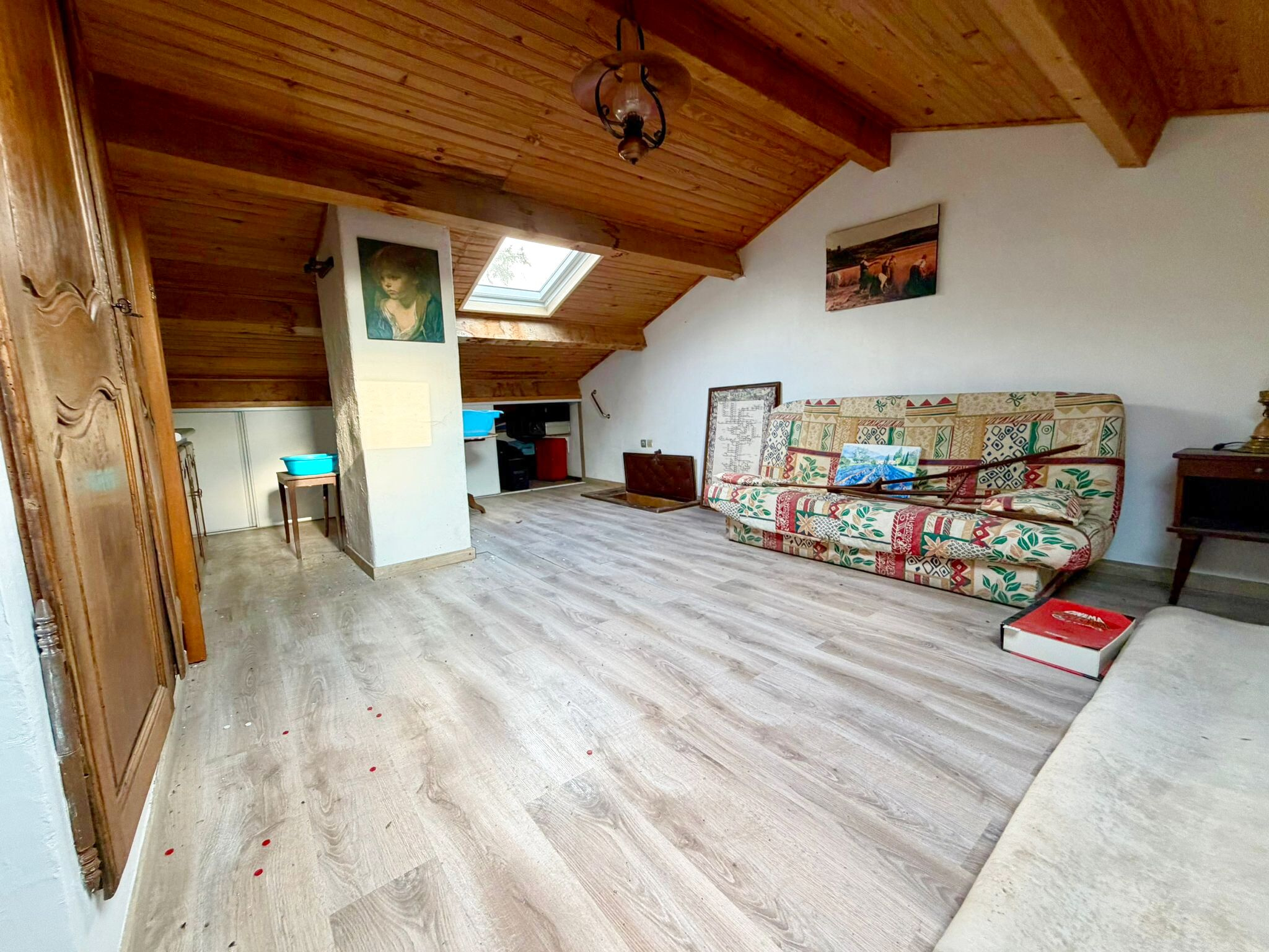 À l'étage, une pièce supplémentaire sous pente, équipée de deux vélux, pourra accueillir selon vos envies un bureau, une salle de jeux ou une chambre d'appoint.