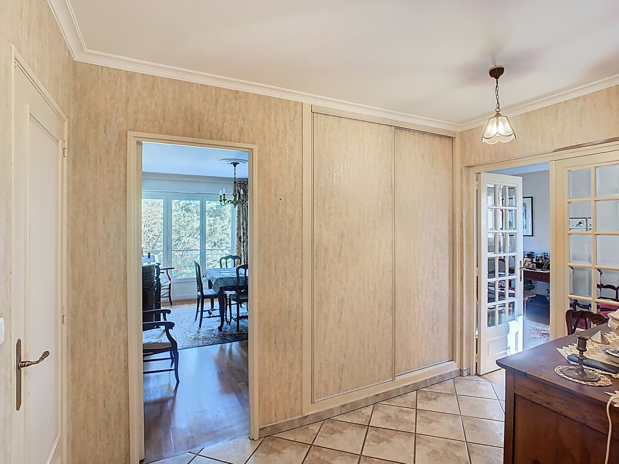 Très bel appartement de 90.35m2 entièrement rénové et très bien entretenu vous séduira par sa luminosité grâce à une double exposition. Situé au 3ème étage d'une résidence calme et sécurisée avec ascenseur. Il se compose d'une entrée spacieuse avec placards, salon et salle à manger de plus de 35m2 sur parquet, lumineux ouvrant sur un balcon avec store-banne, cuisine indépendante aménagée et équipée (plaque vitrocéramique, hotte, four, lave-vaisselle), 2 chambres confortables dont une avec placard, salle d'eau meublée avec branchement machine, WC indépendant, dégagement avec placards. Les plus : cave et une place de parking privative, huisseries doubles vitrages et phoniques récent, nombreux rangement, porte d'entrée très sécurisée/visiophone, parquets, moulures. Proche Tram, Bus et à 7 min à pied des commerces. Contactez Nathalie RAVENEAU au 06 28 40 70 01.'Les informations sur les risques auxquels ce bien est exposé sont disponibles sur le site Géorisque : www.georisques.gouv.fr'. Retrouvez-nous au 9 rue du Haras et 7 boulevard Henri Arnauld à Angers /www.agencedelanjou.fr