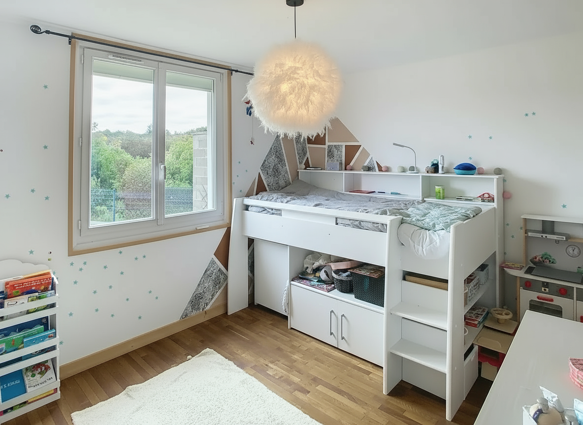 Le bien dispose également de quatre chambres confortables, permettant d'accueillir aisément famille et invités. Une pièce supplémentaire à l'étage offre un espace polyvalent qui pourra être aménagé en salle de jeux, bureau, espace télétravail ou chambre d'appoint, selon les besoins.