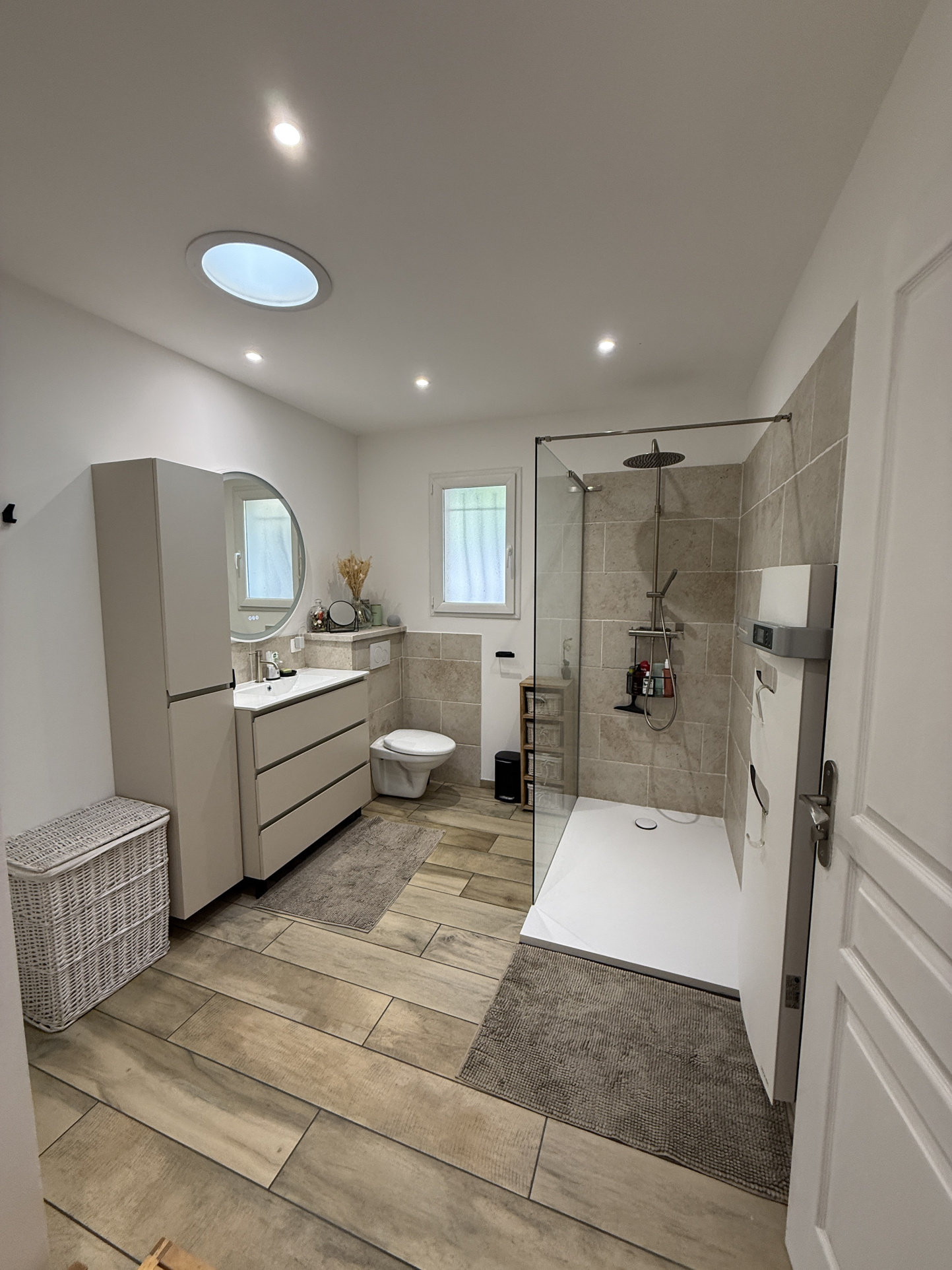 La partie nuit comprend trois chambres avec salle de bains, ainsi qu'une suite parentale offrant un espace privé et confortable.