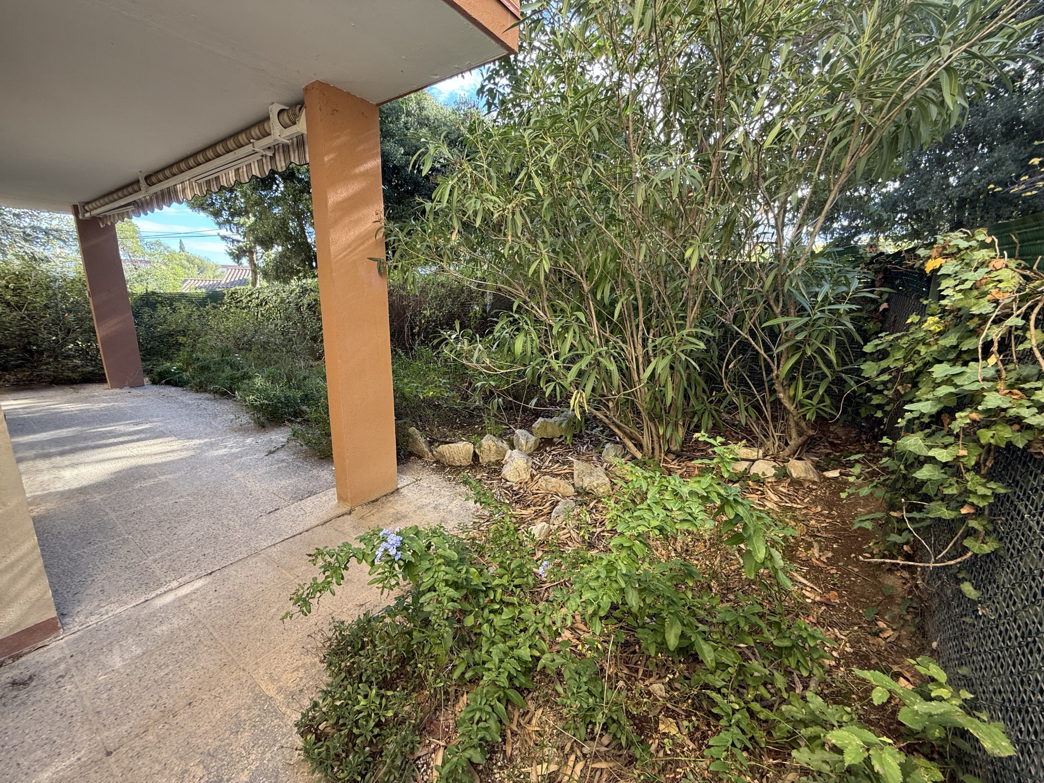 Il se compose d'une entrée, une pièce de vie donnant sur une vaste terrasse couverte avec jardin privatif d'environ 58m2, une cuisine séparée équipée, 3 chambres avec placard, salle d'eau, wc, dégagement, une cave en sous-sol d'environ 2.60m2, un garage en sous-sol d'environ 15.25m2 et d'un parking privé extérieur.