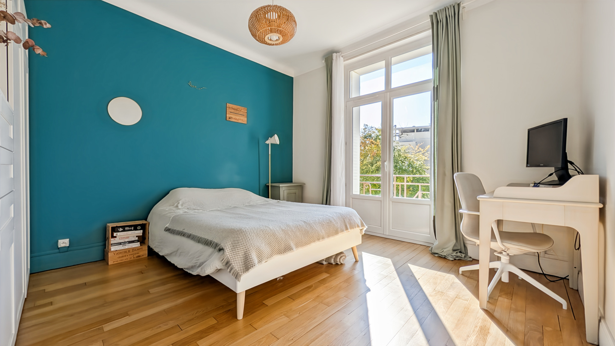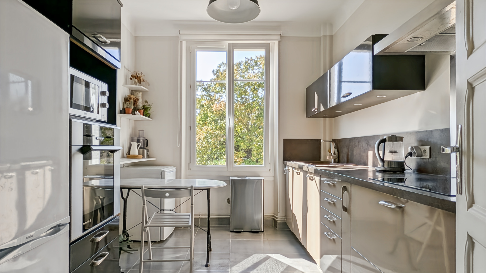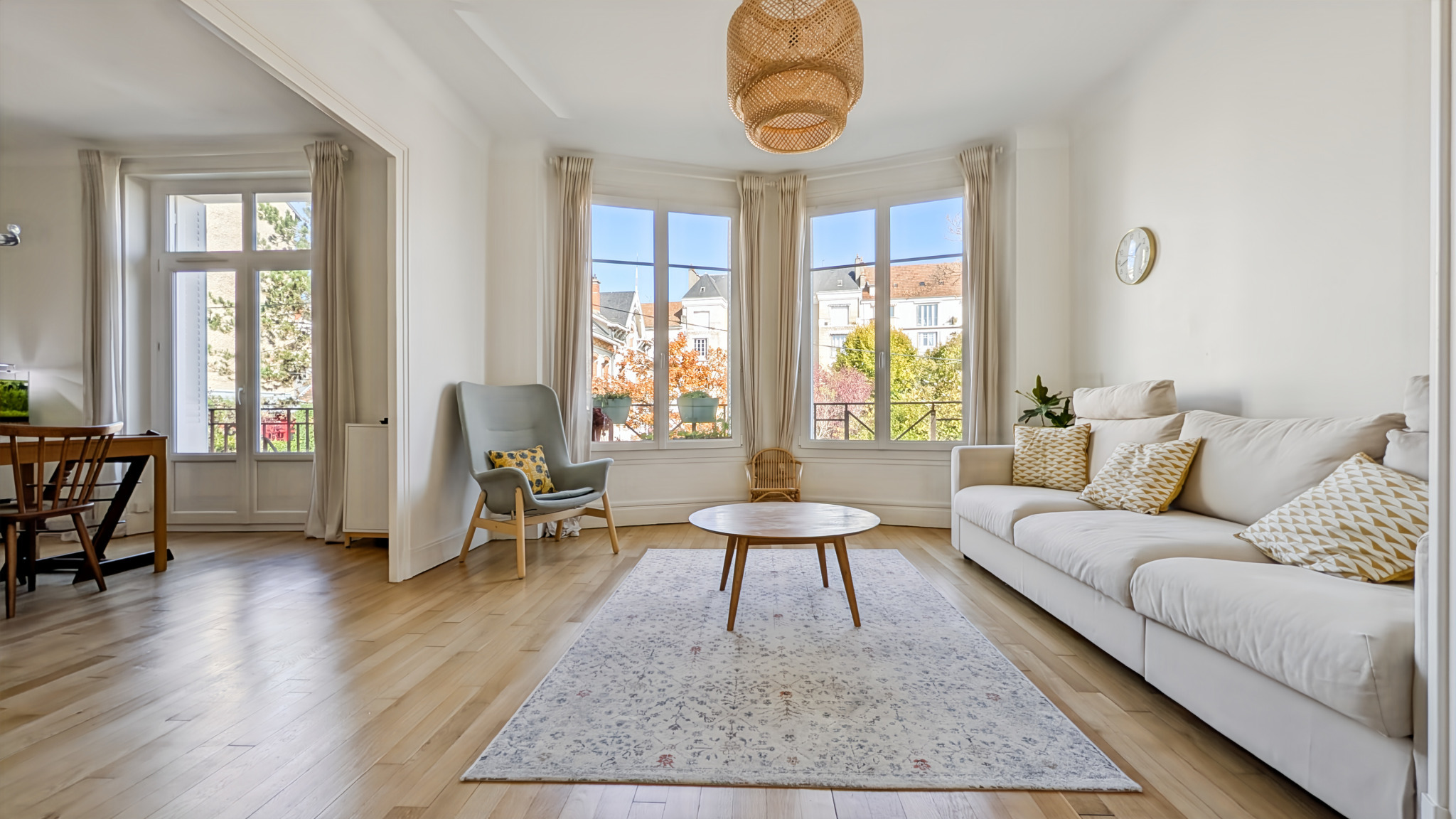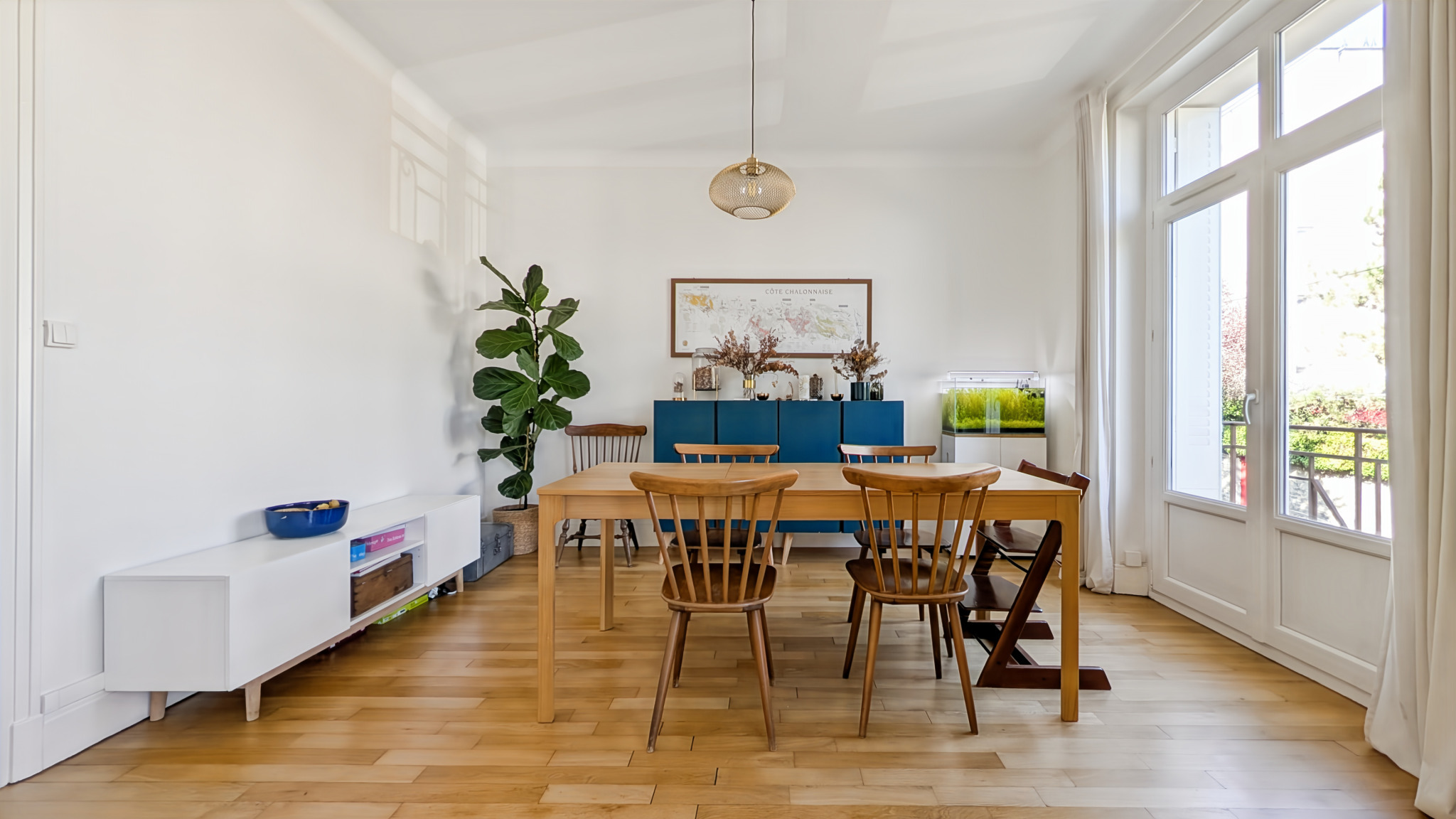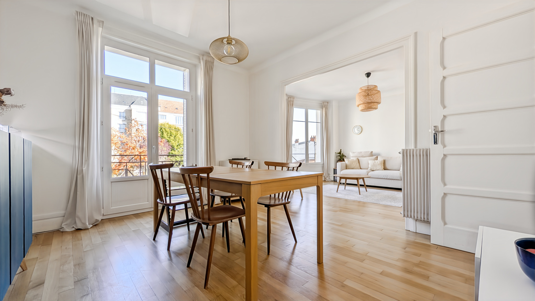 DIJON Bas Victor-Hugo, proximité immédiate du centre-ville. Appartement traversant de 95 m² + cave et GARAGE (stationnement supplémentaire possible) . Dans une résidence de caractère parfaitement entretenue, au premier étage, découvrez cet appartement lumineux offrant tout le charme de l'ancien : Bow-Window, parquet en chêne, belle hauteur sous plafond et volumes généreux. Il comprend deux grandes chambres (possibilité 3), une cuisine équipée, une salle de bain avec fenêtres, et de nombreux rangements. Copropriété soignée avec toiture récemment restaurée . Emplacement recherché, bas de la rue de Talant.
