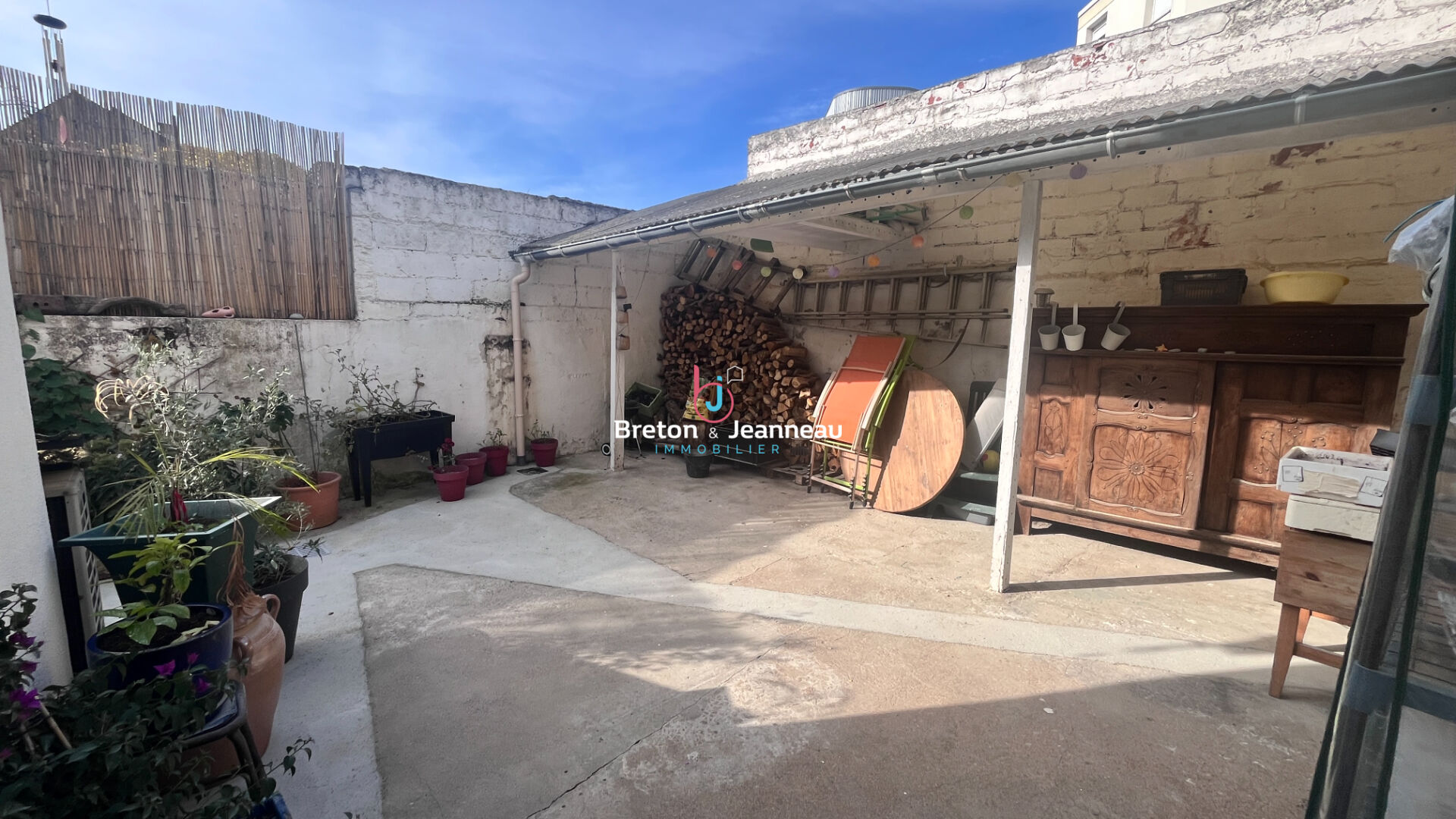 une très belle cour close de murs avec une partie couverte dans un esprit guinguette