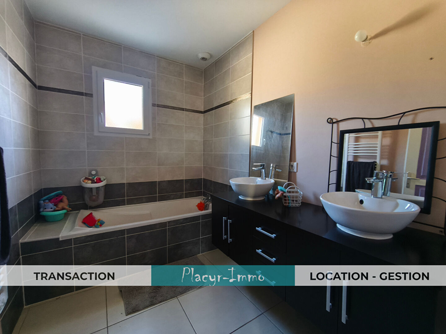 Elle dispose de 3 chambres, dont une suite parentale avec dressing et salle d'eau avec double vasque et fenêtre, une salle de bains indépendante, des toilettes séparées avec lave-mains, une buanderie fonctionnelle avec accès au garage avec porte motorisée.