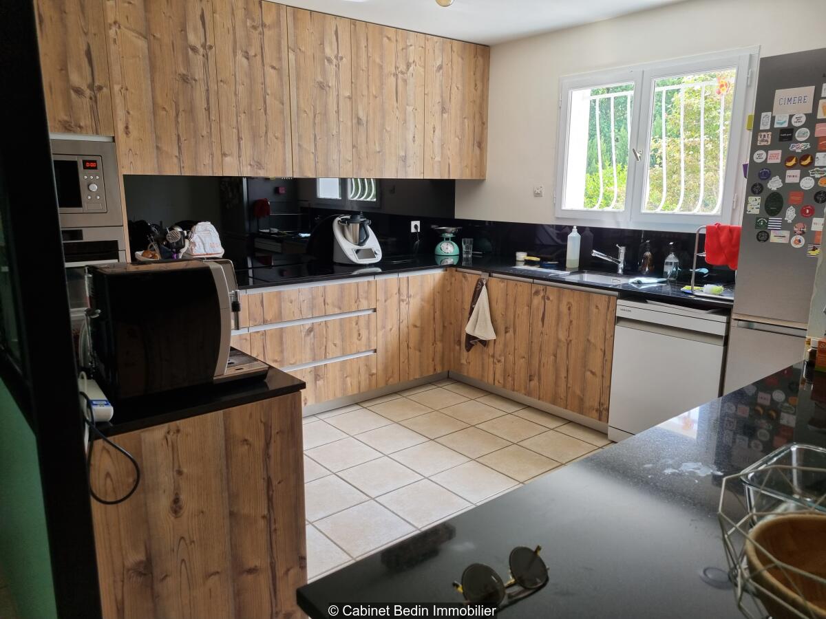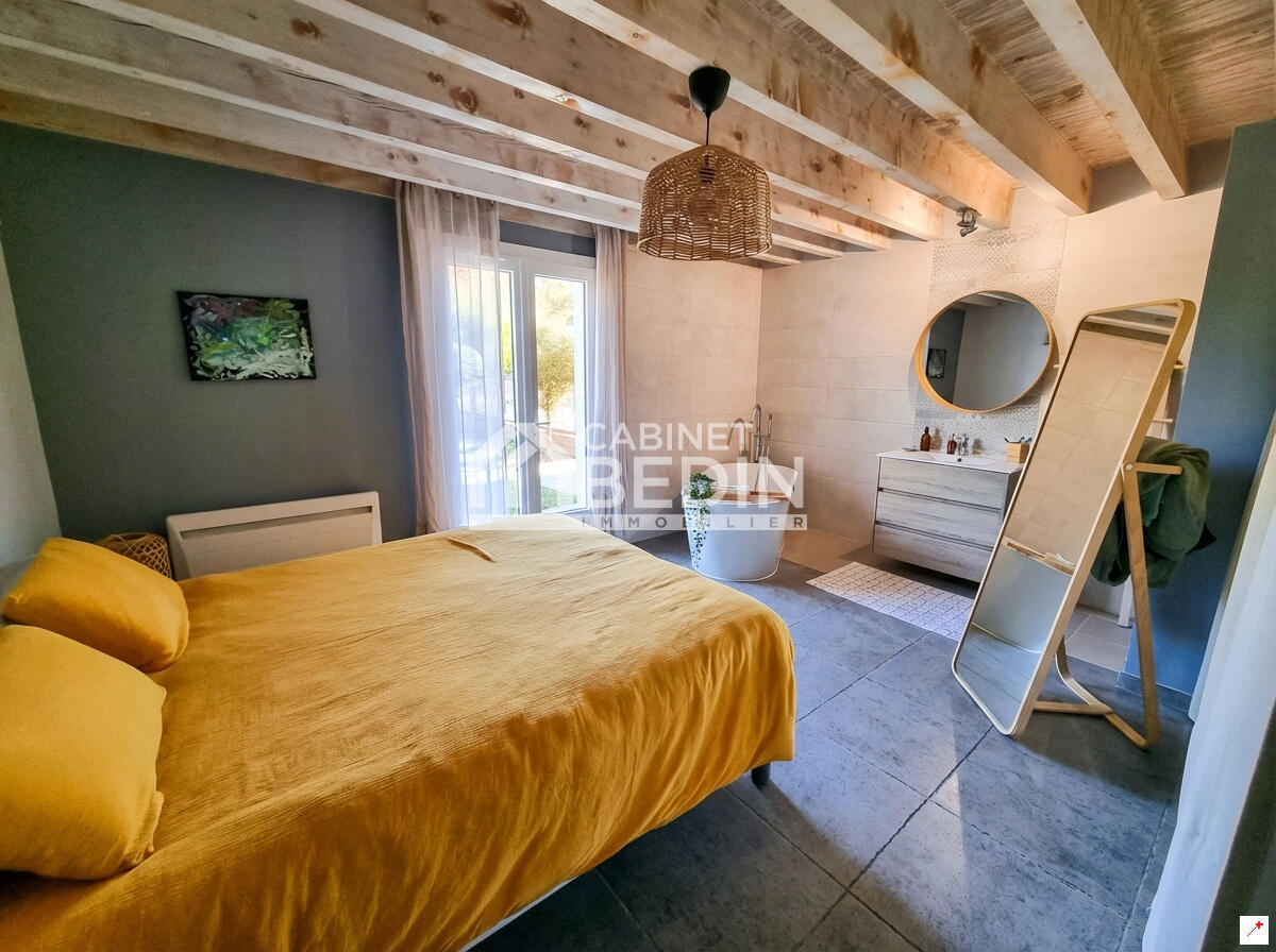 ST MICHEL DE RIEUFRET / SECTEUR LA BREDE -PODENSAC. Au c?ur du paisible village de Saint-Michel-de-Rieufret, proche des écoles et à 15 minutes de La Brède et Podensac, cette maison rénovée avec goût vous séduira par ses nombreux atouts. Elle offre 4 chambres, dont une suite parentale, une belle pièce de vie avec cuisine ouverte équipée, un salon, ainsi qu'à l'étage une grande pièce pouvant servir de chambre supplémentaire ou salle de jeux. Climatisation gainée et autres équipements de confort complètent ce bien. Le jardin généreux, sans vis-à-vis, accueille 3 boxes, une terrasse en bois, une piscine et un mûrier platane, pour des instants cosy et champêtres. À découvrir sans tarder. . Les informations sur les risques auxquels ce bien est exposé sont disponibles sur le site Géorisques : www. georisques. gouv. fr. Montant estimé des dépenses annuelles d?énergie pour un usage standard : entre 910 et 1300 Euros/an (année de référence 2023)