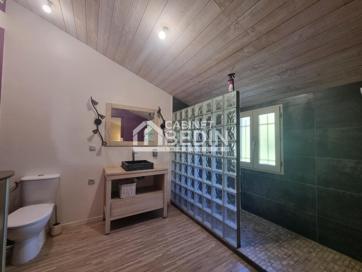 L?étage accueille une superbe suite parentale avec dressing, salle d?eau et un espace bureau pouvant facilement être transformé en quatrième chambre selon vos besoins.