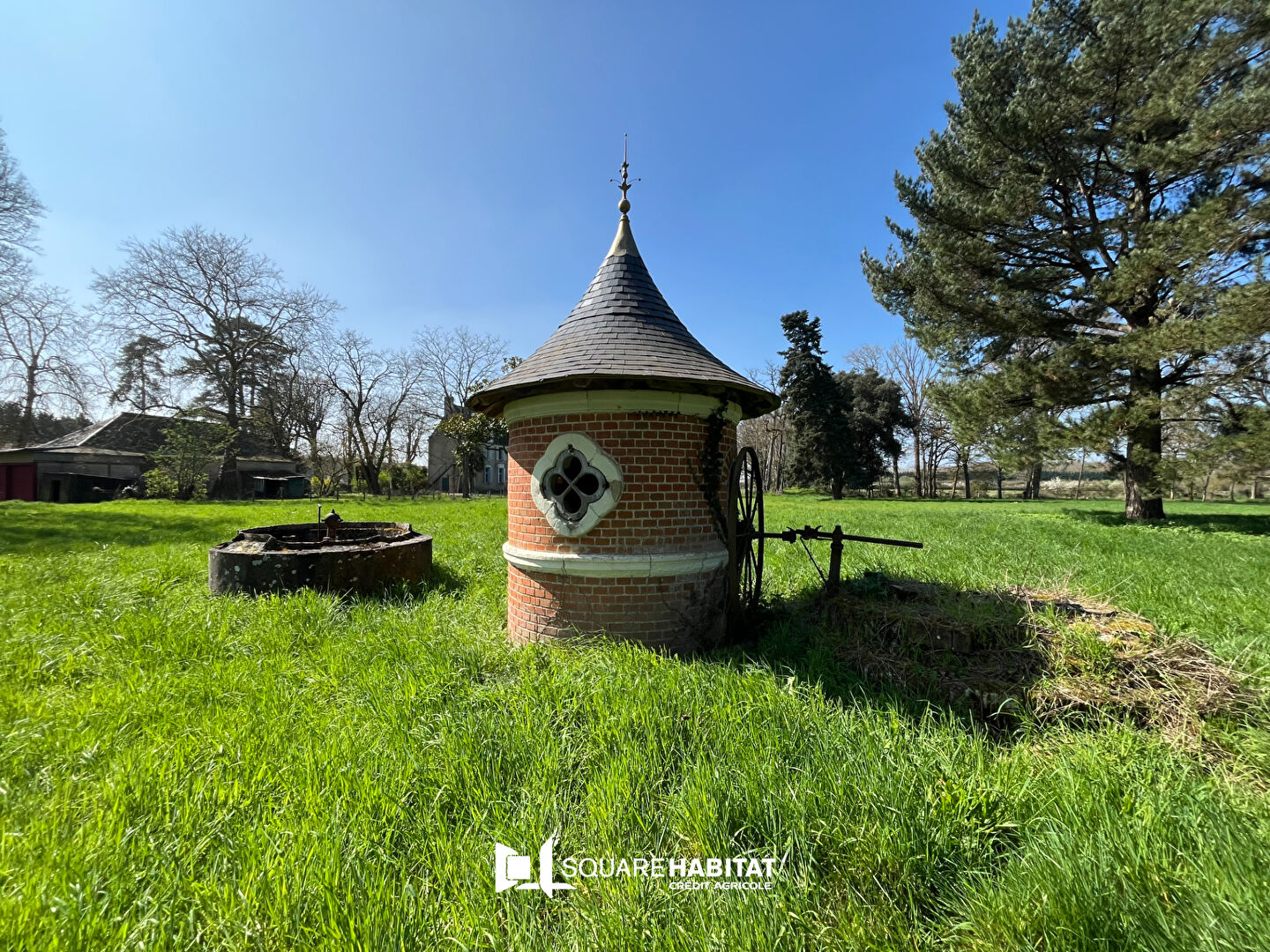 Nichée au coeur de 3 hectares attenants, la propriété comprend la Demeure principale à rafraîchir ainsi que plusieurs dépendances (garage, atelier, grange, pigeonnier) offrant de nombreuses possibilités d'aménagement.