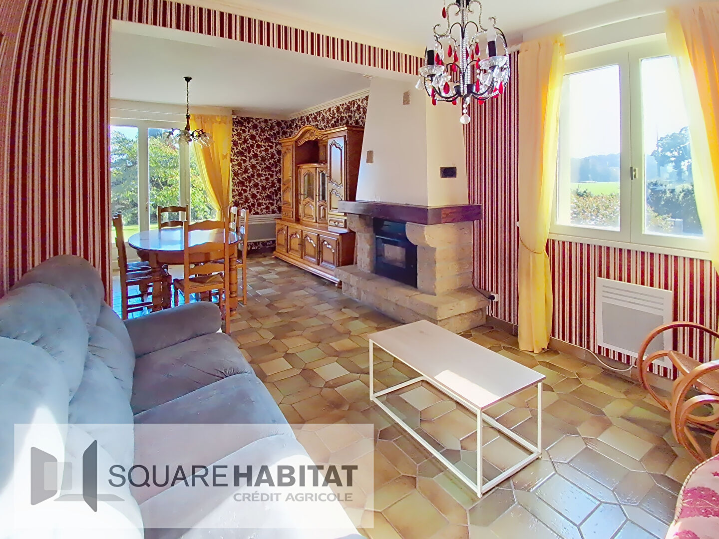 Au rez-de-chaussée: grande entrée, salon/salle à manger avec un insert à granulés, grande cuisine indépendante aménagée et équipées, chambre, salle de bain et WC,