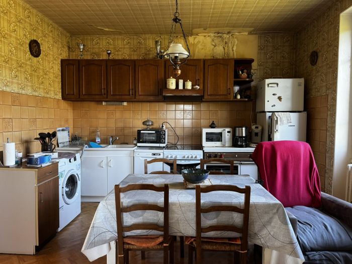 Dotée de menuiseries en double vitrage PVC, cette maison nécessite quelques travaux de remise au goût du jour afin de lui redonner tout son éclat et révéler pleinement son fort potentiel.