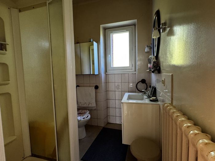 Le rez-de-chaussée comprend une cuisine, un séjour, une chambre, une salle d'eau, un WC, ainsi qu'un garage communicant avec la maison. Au premier étage, vous trouverez une seconde cuisine, un séjour, deux chambres, une salle d'eau et un WC. Le deuxième étage dispose d'une chambre supplémentaire et d'un grenier aménageable. À l'extérieur, le terrain offre la possibilité d'aménager un espace potager et bénéficie également d'une terrasse en dallage pierre, ombragée par un tilleul et exposée sud-est, garantissant luminosité et confort.