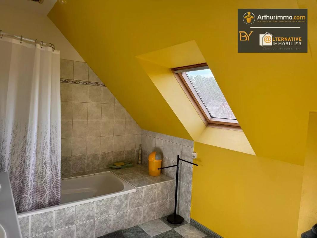 À l'étage, un palier dessert trois chambres, des toilettes, une salle de bains, ainsi qu'un grenier aménageable offrant un potentiel supplémentaire.
