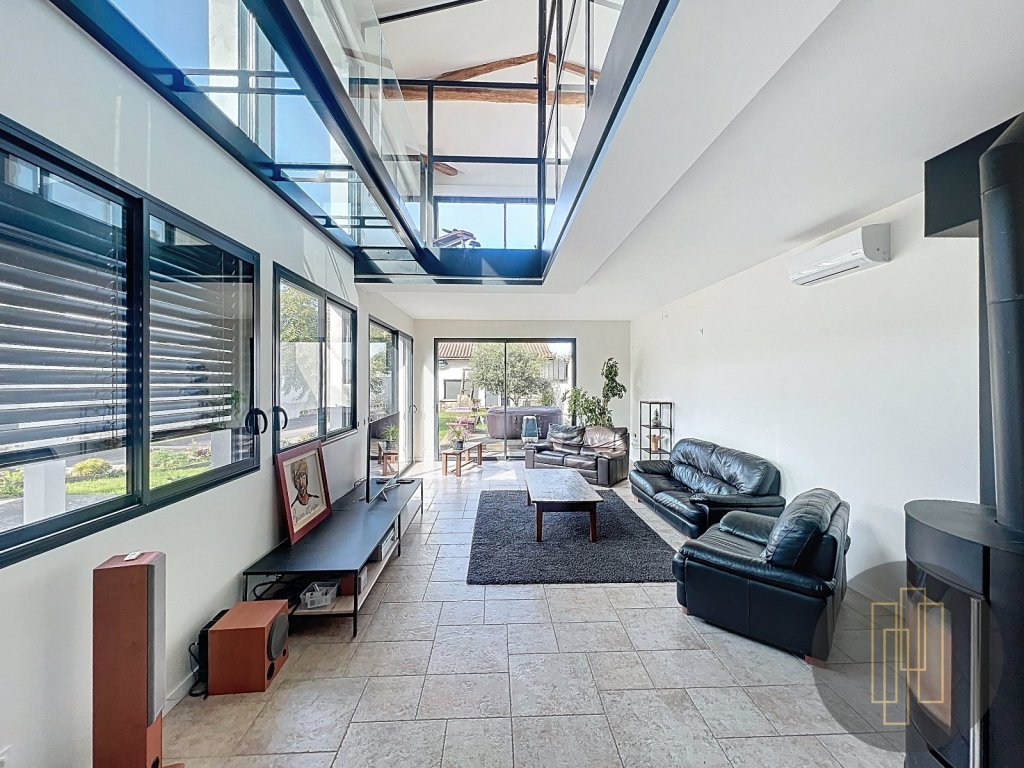 Dès l'entrée, le ton est donné : grands volumes, lumière traversante, et lignes épurées. Le vaste séjour profite d'une belle hauteur sous plafond et de grandes baies vitrées ouvrant sur un agréable espace extérieur paysagé, à l'abri des regards.