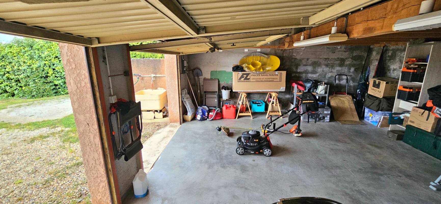 Un double garage de 23 m2 , un cellier et un patio complètent ce bien rare sur le marché .