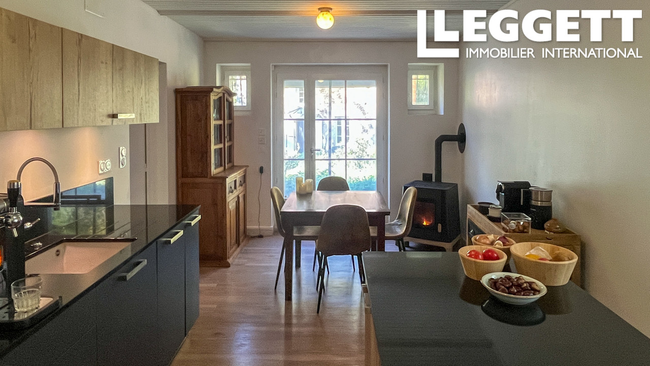 - Une maison principale, comprenant trois chambres, une spacieuse pièce de vie, une cuisine moderne, ainsi qu'une belle terrasse avec vues sur les bois. Des panneaux solaires installés sur la propriété génèrent un revenu complémentaire pour les propriétaires.