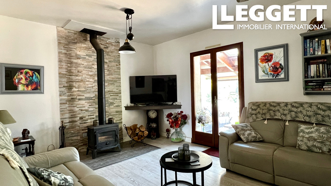 A40697GJP24 - Spacieuse maison de plain-pied située sur un parc privé de 1,9 hectare comprenant un parc arboré, des prairies et une belle vue dégagée. La maison comprend : séjour/salle à manger lumineux de 34 m² avec poêle à bois, cuisine entièrement équipée de 14 m² et grande véranda ouvrant sur la terrasse pavée de 60 m². La suite parentale (environ 40 m²) comprend une chambre avec accès à la terrasse, un bureau/dressing et une salle d'eau moderne. Deux autres chambres partagent une salle de bains familiale et des toilettes séparées. Le jardin paysager dispose d'une piscine hors-sol de 5 x 5 m, de plusieurs garages totalisant plus de 65 m². Le terrain est en partie boisé et en partie en prairie Un cadre paisible offrant confort, espace et nature, à seulement quelques minutes des commodités.