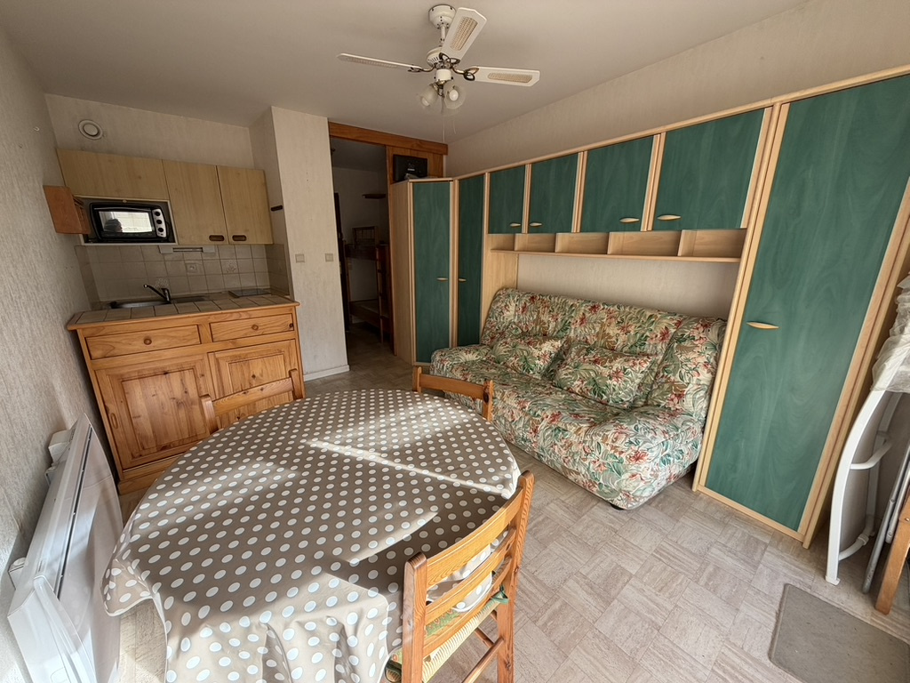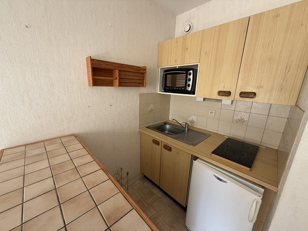 A quelques pas de la PLAGE, très proche arago, au premier étage d'une résidence en bon état, UN APPARTEMENT se composant d'une entrée avec alcôve (couchage enfants), un placard de rangement, un séjour-salon avec cuisinette aménagée, un blacon loggia exposition sud (sans passage de véhicule), salle d'eau avec wc. Résidence bien entretenue. Local vélo accès plain pied. Statut de la copropriété. Prix de vente 145 000 EUR plus 6 000 EUR TTC d'honoraires agence à la charge de l'acquéreur.