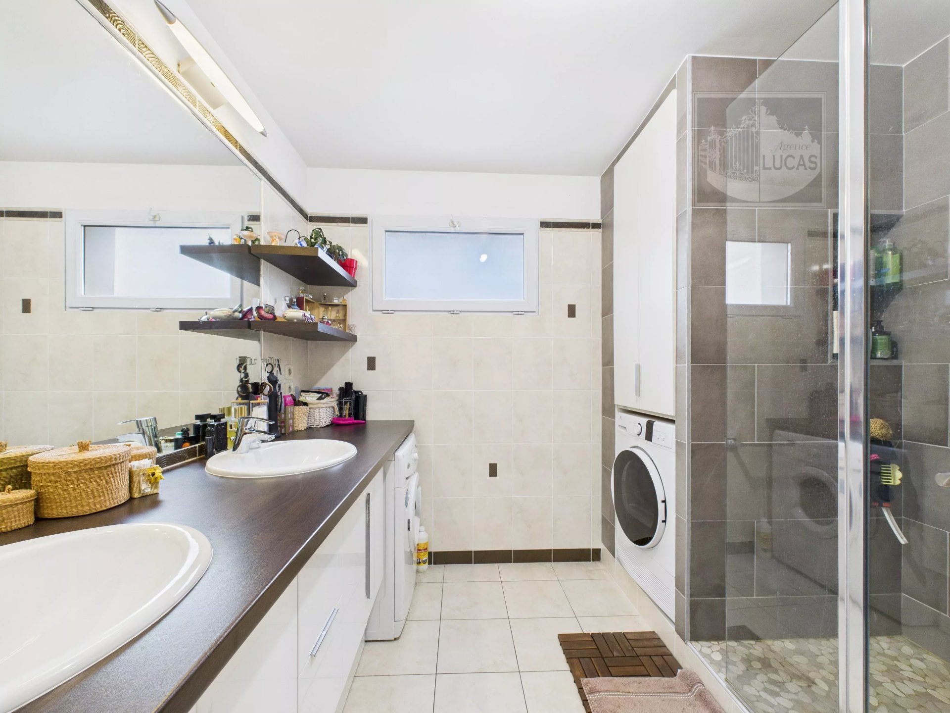Dans une petite copropriété de 1995, appartement 5 pièces en duplex de 130 m² (101 m² hab) avec terrasse de 15 m². Comprenant entrée, salle a manger-cuisine, salon avec coin bureau, 3 chambres, salle d'eau avec espace buanderie, salle de bains, 2 toilettes.