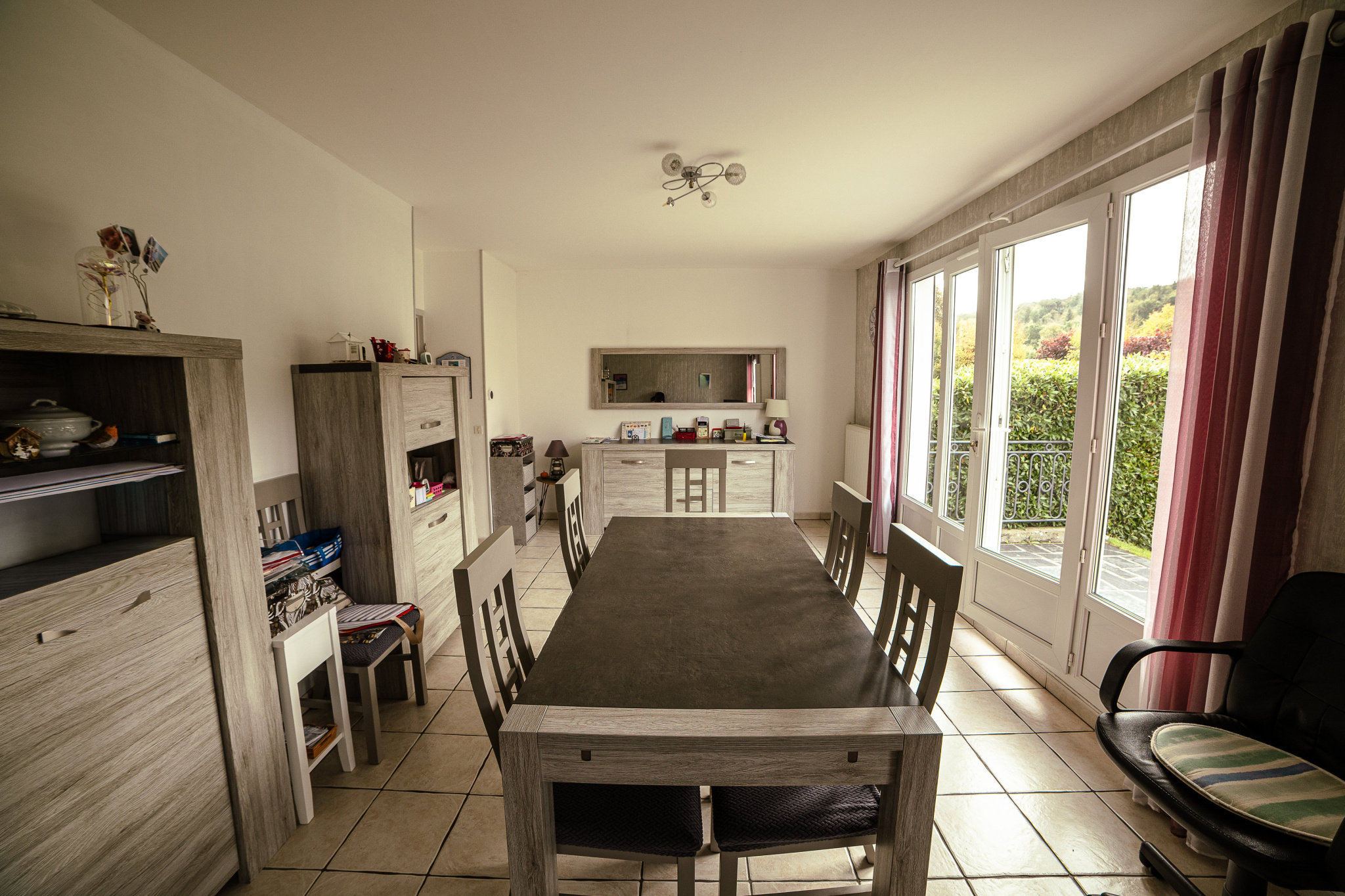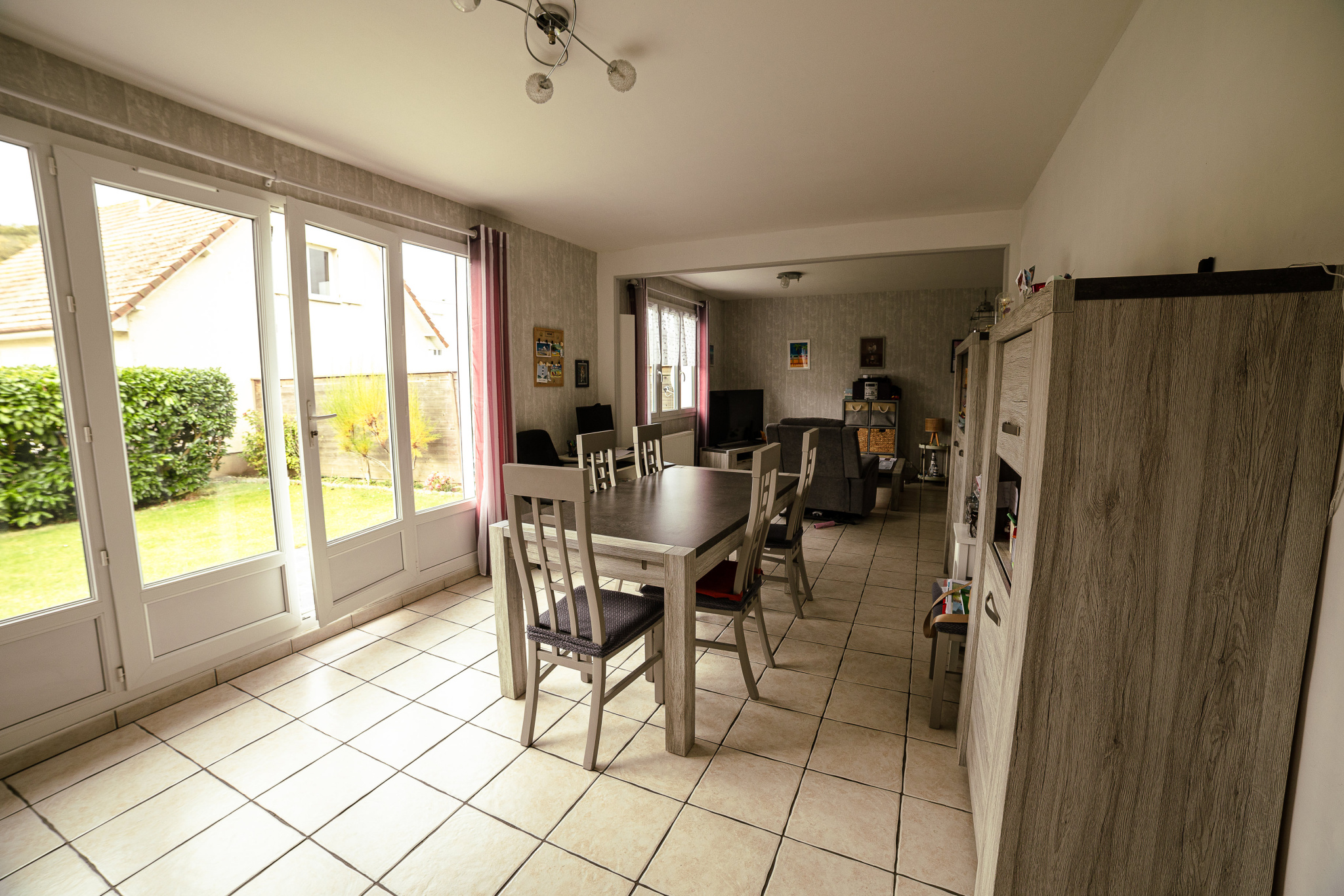 Belle pièce de vie lumineuse ouverte sur le jardin
