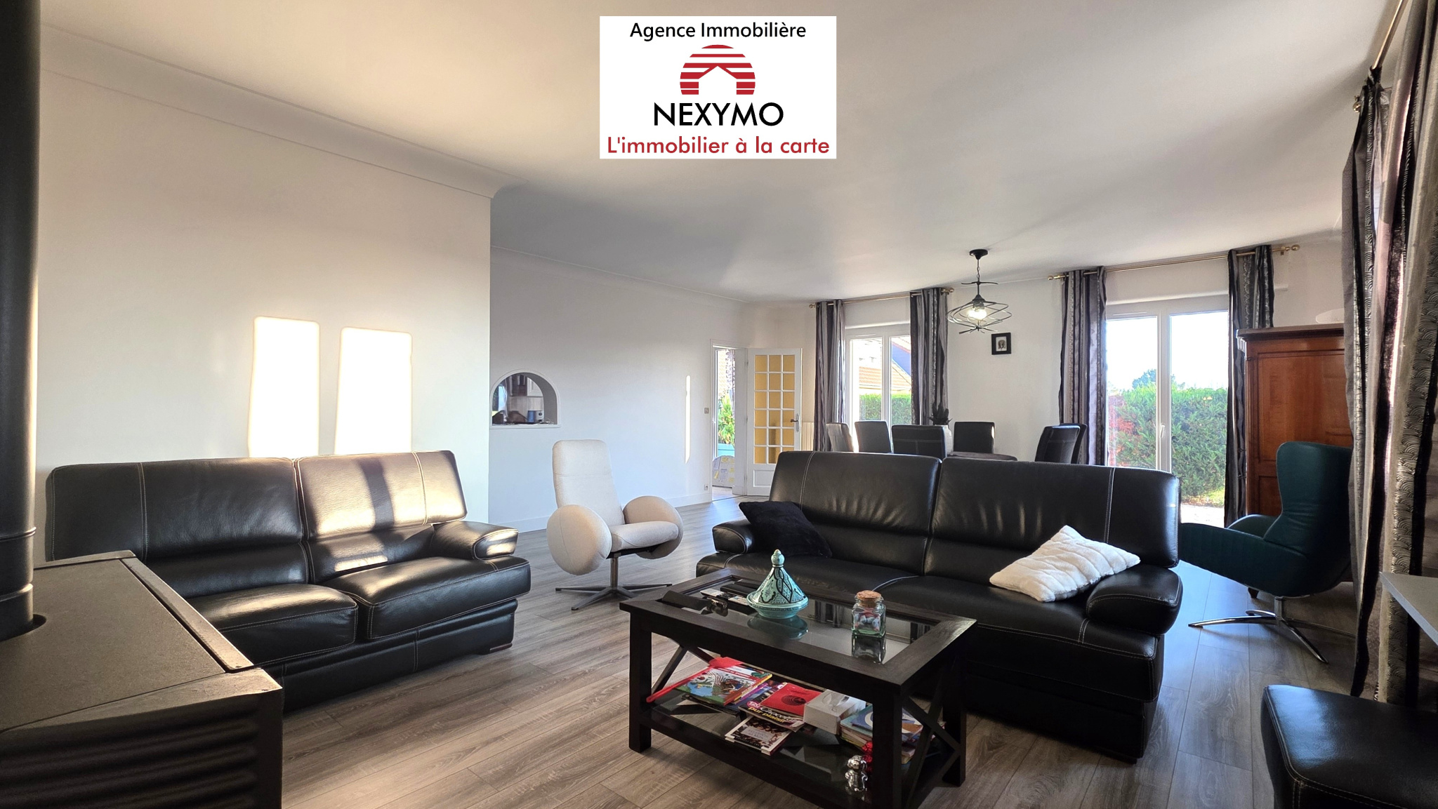 LE MANS SECTEUR SUD - BIEN RARE - Exclusivité NEXYMO : Sur la commune du Mans, proche des commodités de transport, venez découvrir cette belle maison de 171m2 implantée sur un terrain arboré de 1300m2 dans un environnement calme. Ce bien parfaitement entretenu dispose d'une entrée spacieuse, salon-séjour lumineux avec grande cuisine attenante et accès à une belle terrasse bien orientée, 4 chambres dont une de plain-pied, salle d'eau récente de plain-pied, bureau, pièce de rangement, salles de bains avec douche et baignoire. Double-garage et cave en sous-sol.