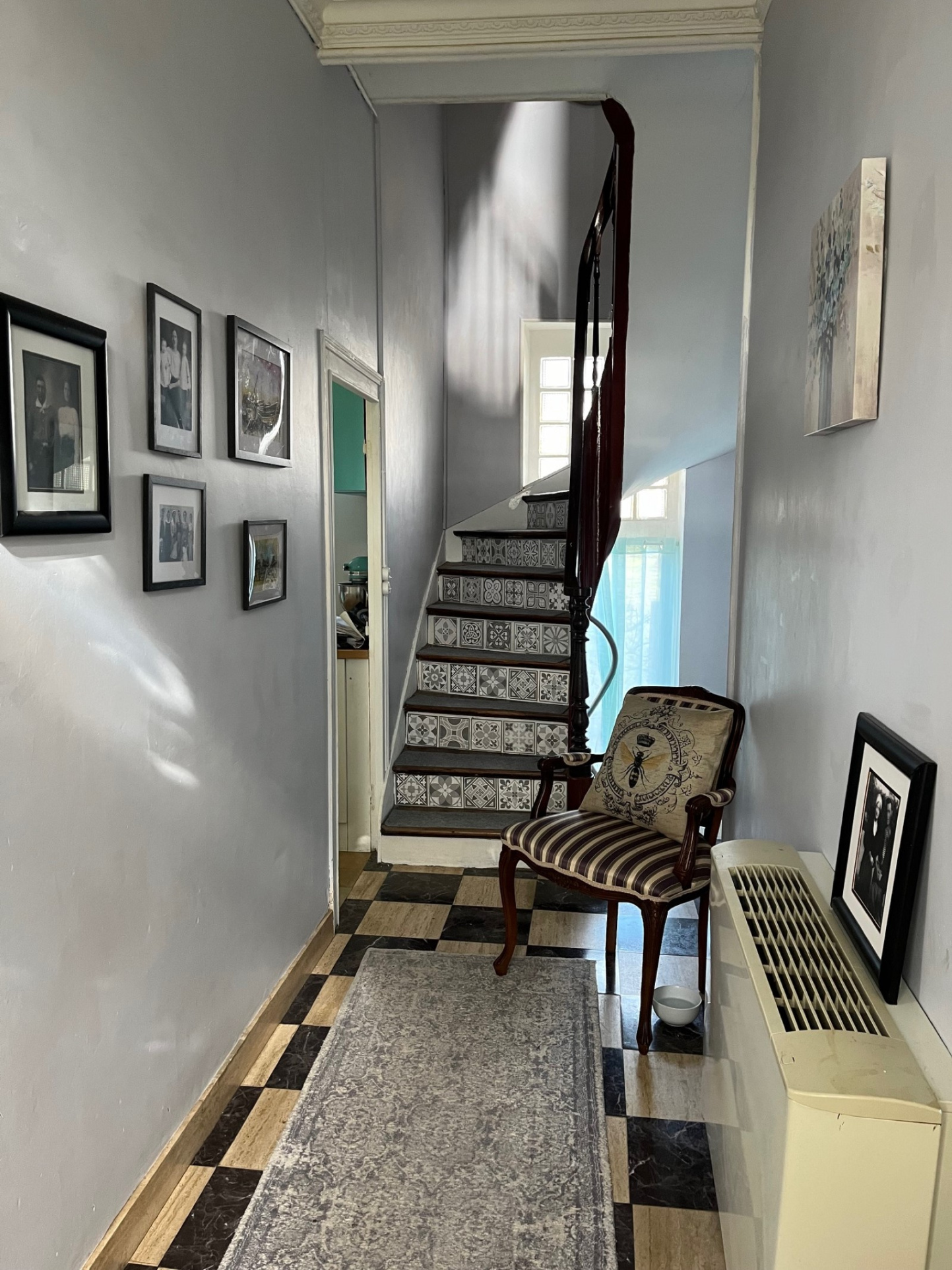 Au rez-de-chaussée : entrée, cuisine équipée, salle à manger, séjour, wc. 1er étage : 3 chambres et salle de bains avec douche et wc ; 2eme étage une chambre mansardée.