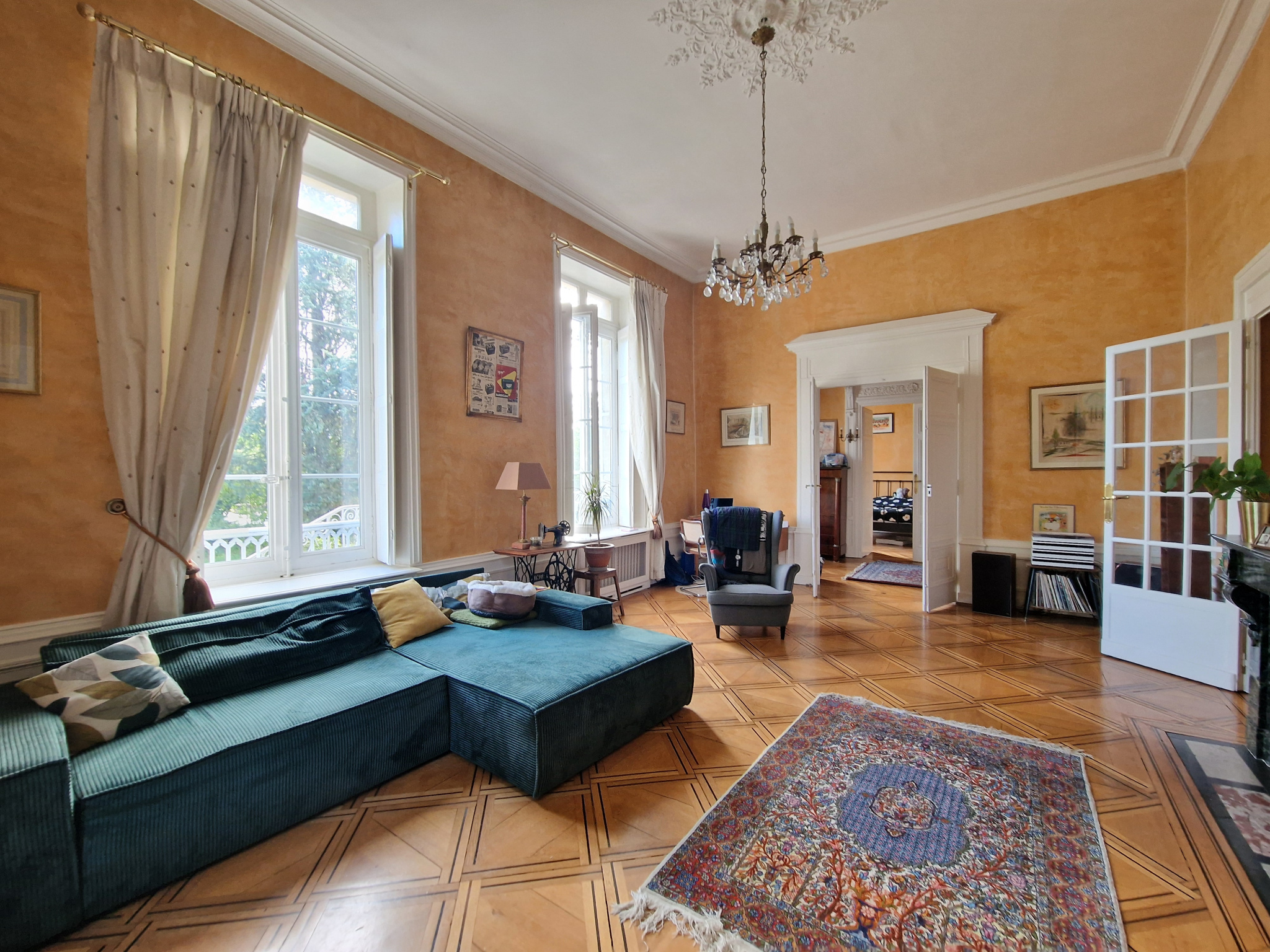 CD IMMOBILIER SAS vous présente en exclusivité, au rez de chaussée d'une superbe maison de Maître, ce T5 de 142 m2 carrez. Il vous séduira par son charme, ses parquets, sa cheminée, ses moulures et ses hauteurs de plafonds. Son jardin, face à sa terrasse, tous deux privatifs vous permettront de jouir des extérieurs aux beaux jours. Il se compose d'une cuisine séparée, d'un salon sur terrasse et jardin, de trois chambres, une salle d'eau, et en souplex une quatrième chambre avec ses wc et sa salle de bains. Le charme, incontestable des lieux, au seing d'une demeure bourgeoise de 1920 et ses 2425 m2 de jardin, mise en copropriété en 1958, dans le respect des lieux avec 7 lots d'habitations, vous séduira sans aucun doute. La chauffage est produit par pompe à chaleur individuelle installée en 2023. L'appartement bénéficie d'un garage, de 3 places de stationnement, et de trois grandes caves. Contactez Christèle Lehoux Volcoff chez CD IMMOBILIER SAS au 06.08.54.43.01 pour visiter ce bien