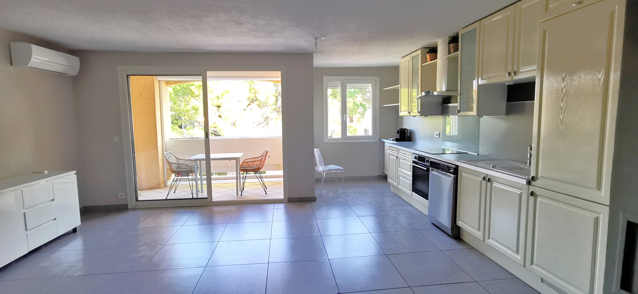Parfaitement agencé, ce bien se compose d'un vaste séjour climatisé, lumineux et confortable, ouvrant sur une jolie terrasse idéale pour profiter des belles journées ensoleillées autour d'un déjeuner entre amis ou en famille. La cuisine ouverte, entièrement équipée, s'intègre harmonieusement à l'espace de vie pour une atmosphère conviviale et moderne.