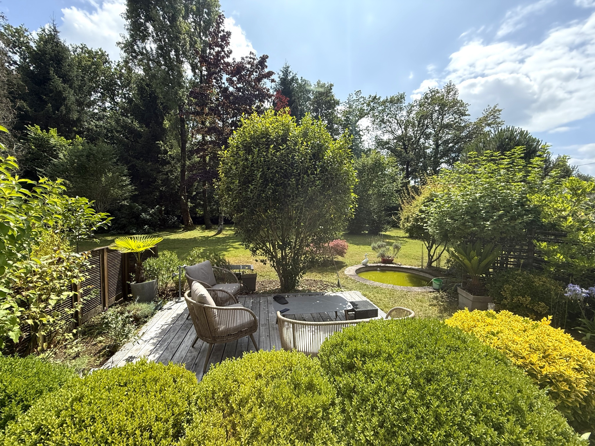 Au coeur d'un superbe parc paysager d'environ 5 000 m2, bordé par 1,2 hectare de bois privés, cette maison familiale de 149 m2 offre un cadre de vie rare, à la fois verdoyant et intime.