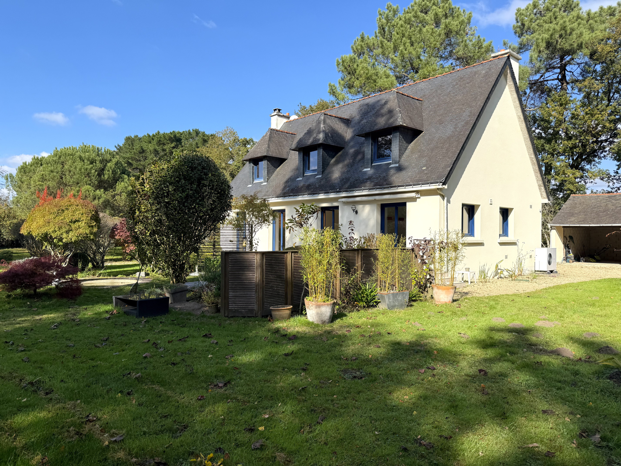 Située à mi-chemin entr eQuimperlé et Clohars-Carnoët, la propriété allie calme, nature et proximité des commodités (5 minutes en voiture de chaque commune).