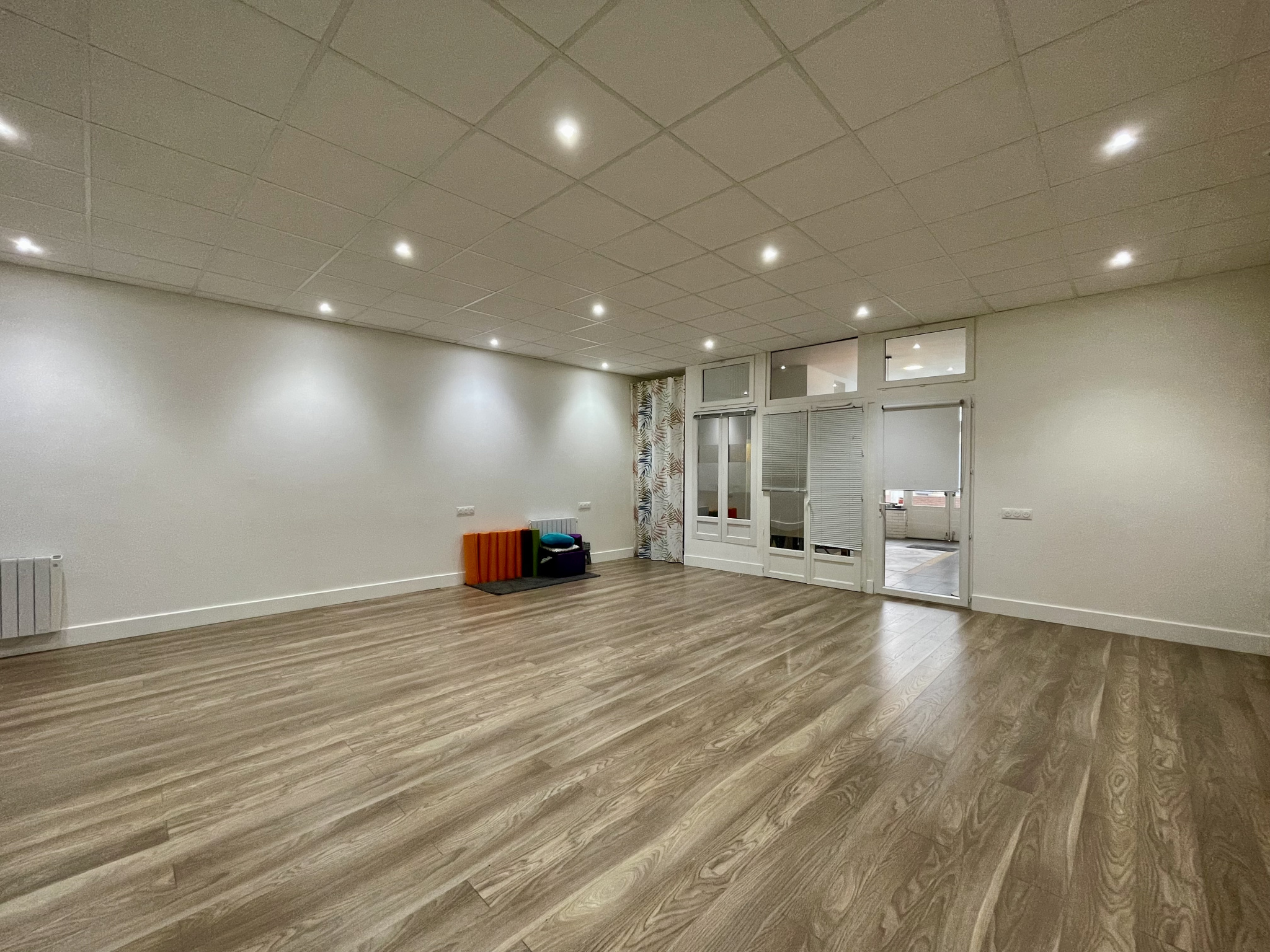 Il contient 2 lots : un local de 79m2, rénové avec goût et composé d'une grande entrée distribuant une pièce type bureau, 2WC (dont un avec accès PMR) et une grande salle d'activité de 50m2; un local de 31m2 composé d'une entrée, dune pièce de vie avec cuisine ouverte et d'une pièce avec sa SDE attenante (+WC), pouvant faire office de bureau.