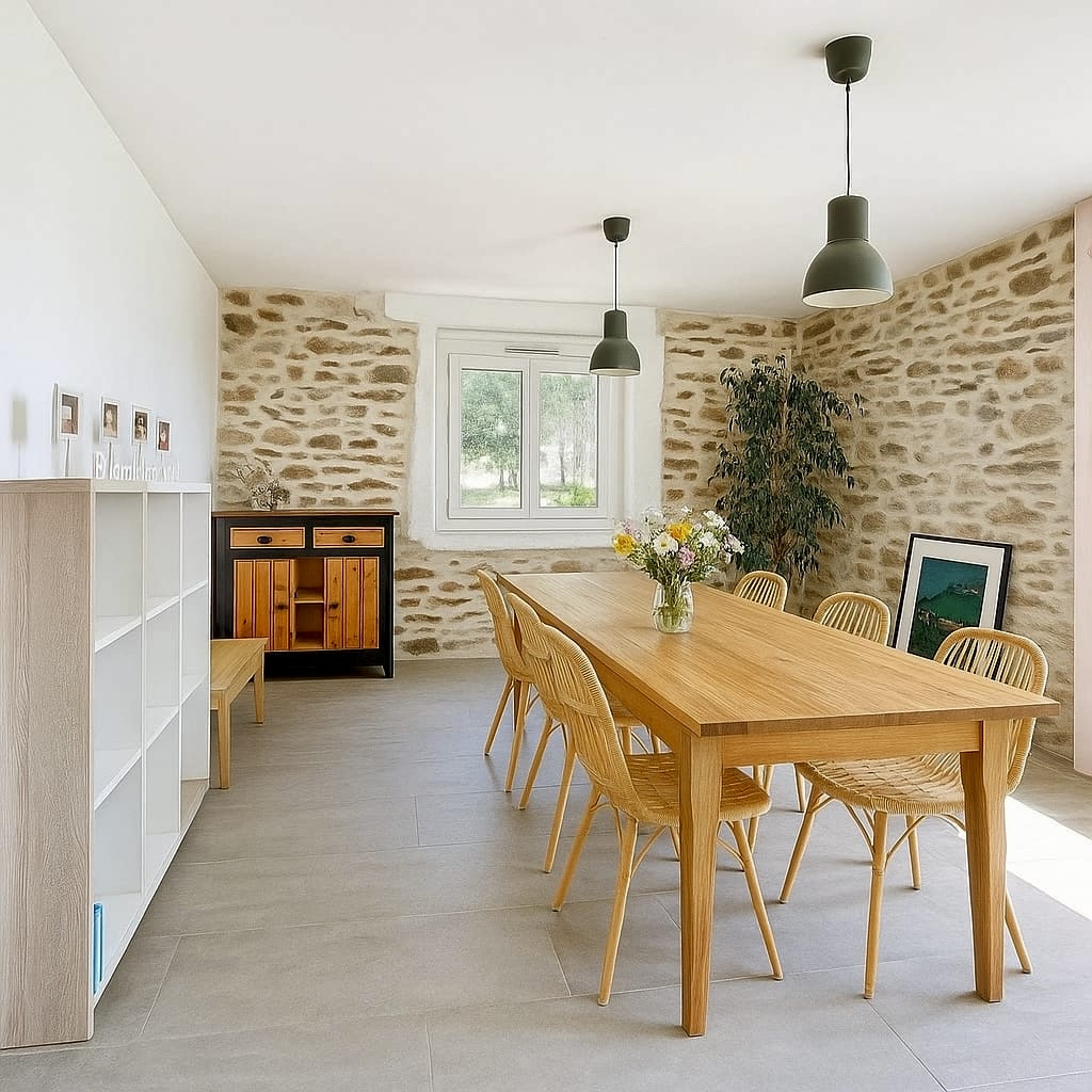 SUPERBE CORPS DE FERME EN PIERRE ENTIEREMENT RENOVE (2013; la partie dépendance grange avec mitoyenneté non genânte).
