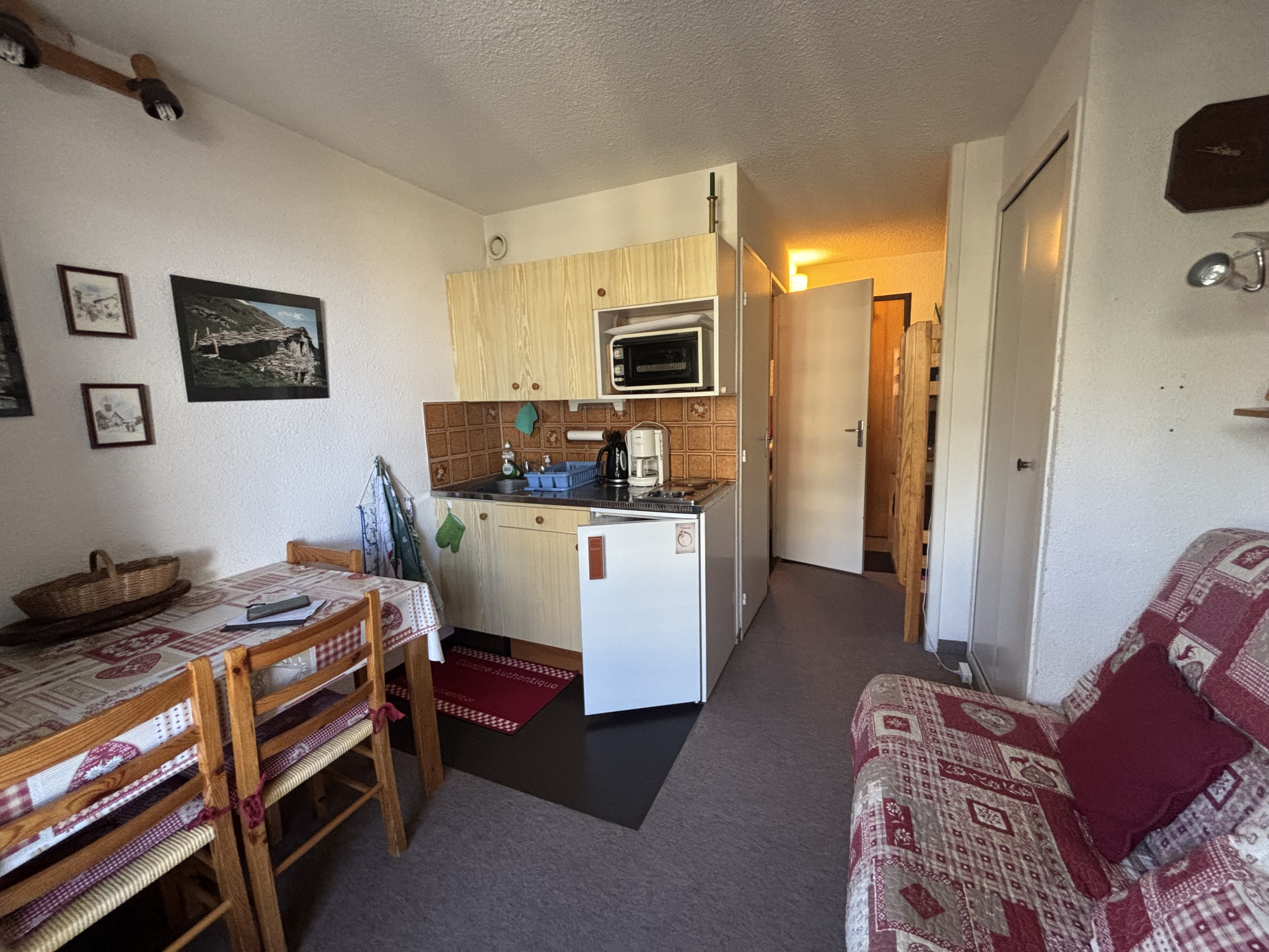 Idéalement situé dans une résidence au calme, skis aux pieds et proche des commerces, ce studio fonctionnel de 16.23 m2 (loi Carrez). Il se compose d'une entrée avec un coin montagne, une salle de bain et un WC séparé. Une pièce à vivre, avec kitchenette et séjour s'ouvrant sur un balcon exposé NORD.