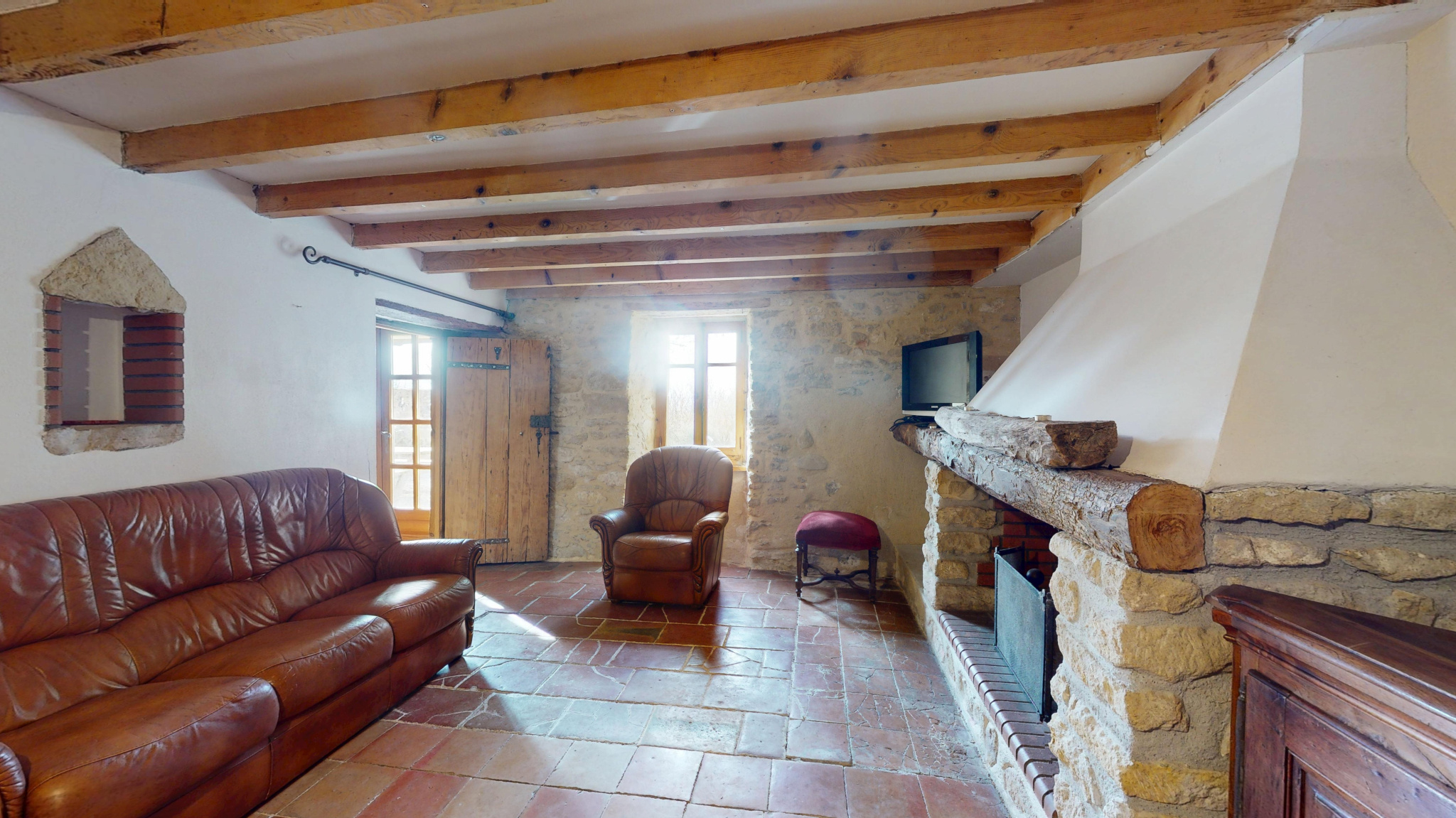 La partie jour se compose d'une salle à manger avec insert, d'une cuisine aménagée et d'un salon avec cheminée.